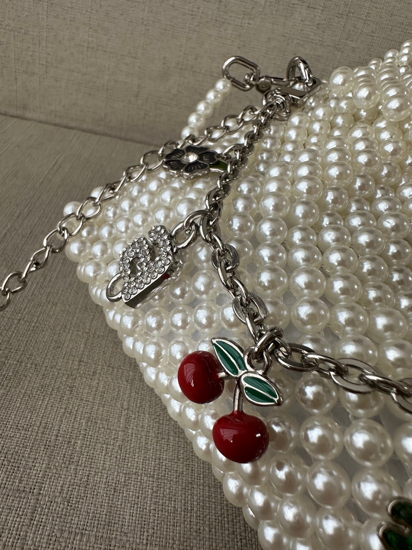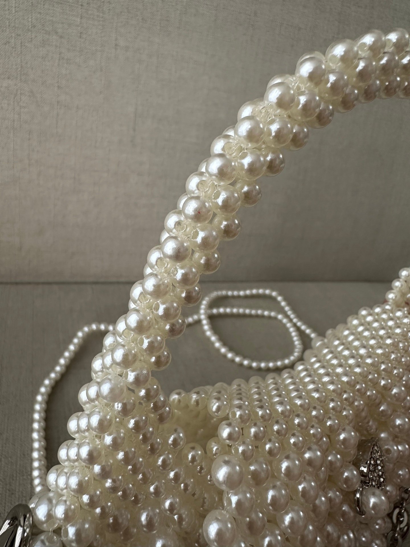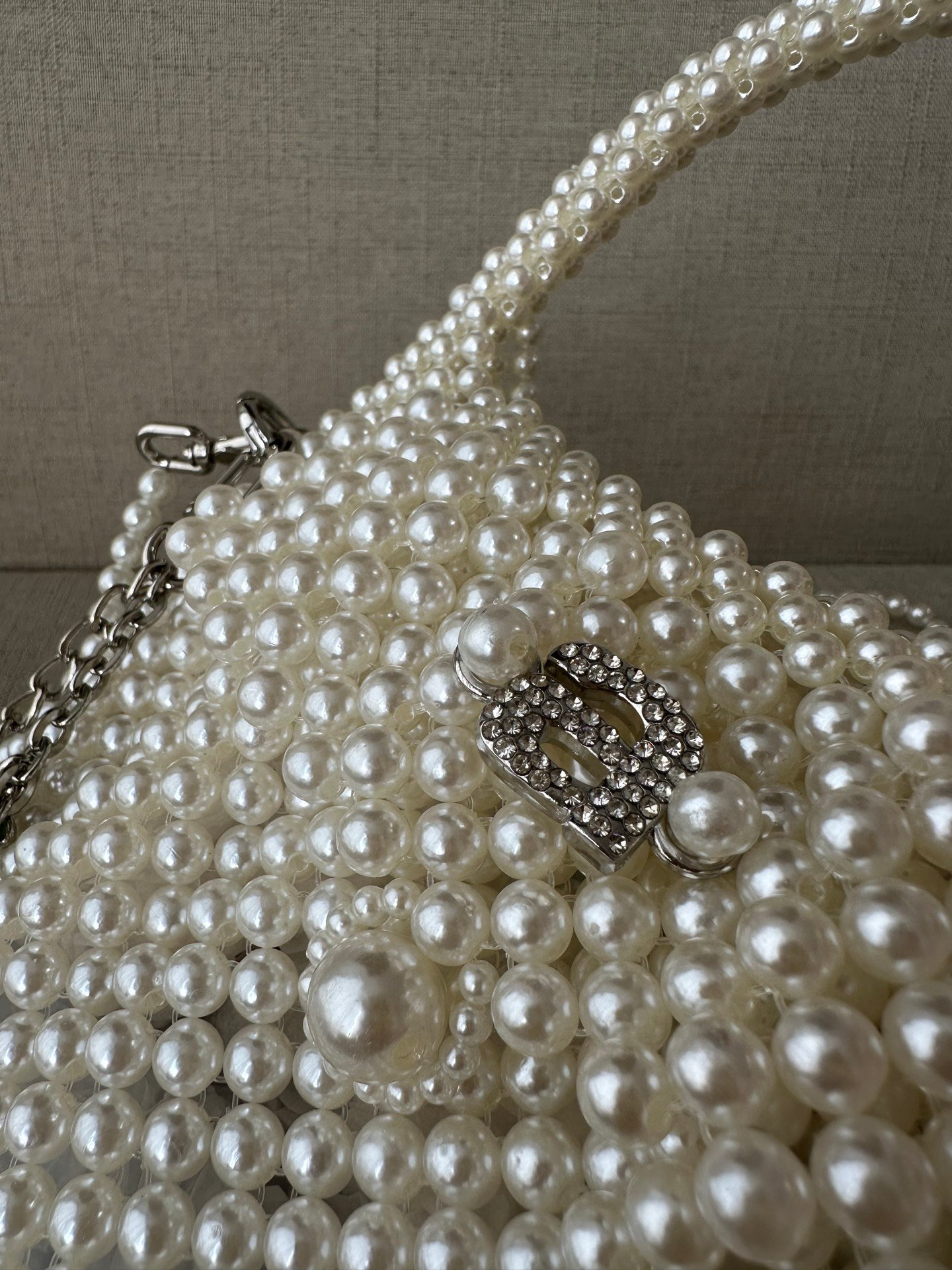 Crafted with hand-applied, high-quality faux pearls, the bag offers exceptional texture, shine, and durability. The smooth leather trim and silver-tone hardware add a refined contrast, elevating the bag’s luxury status and ensuring long-lasting shape retention.