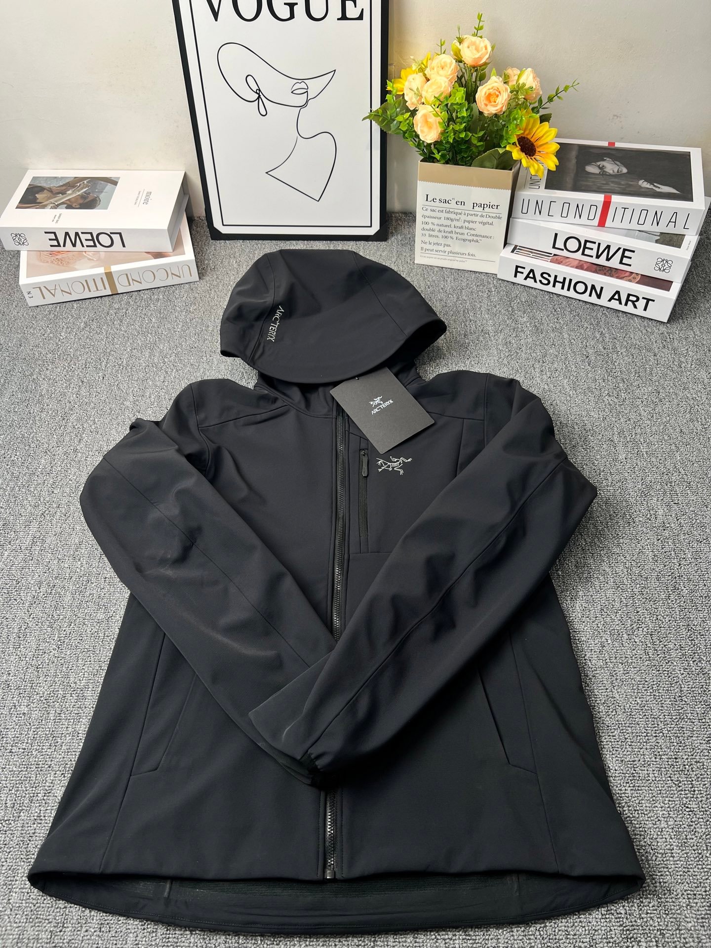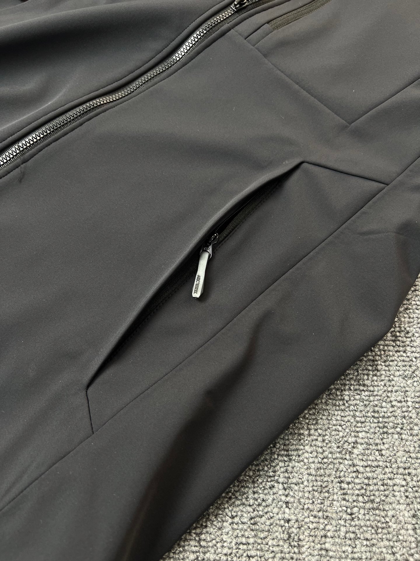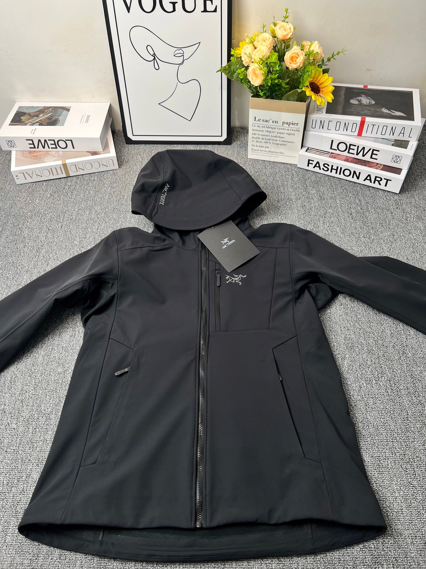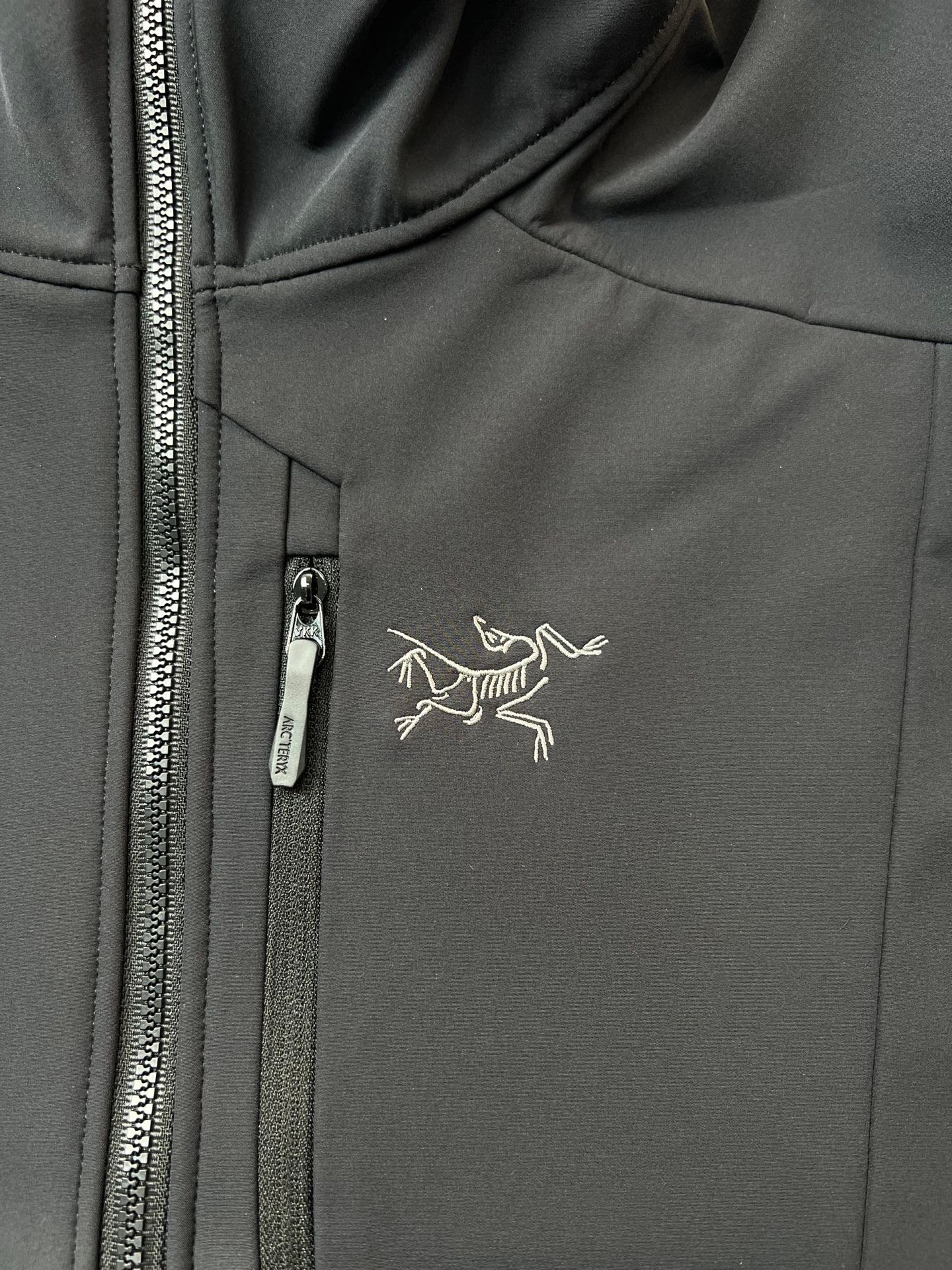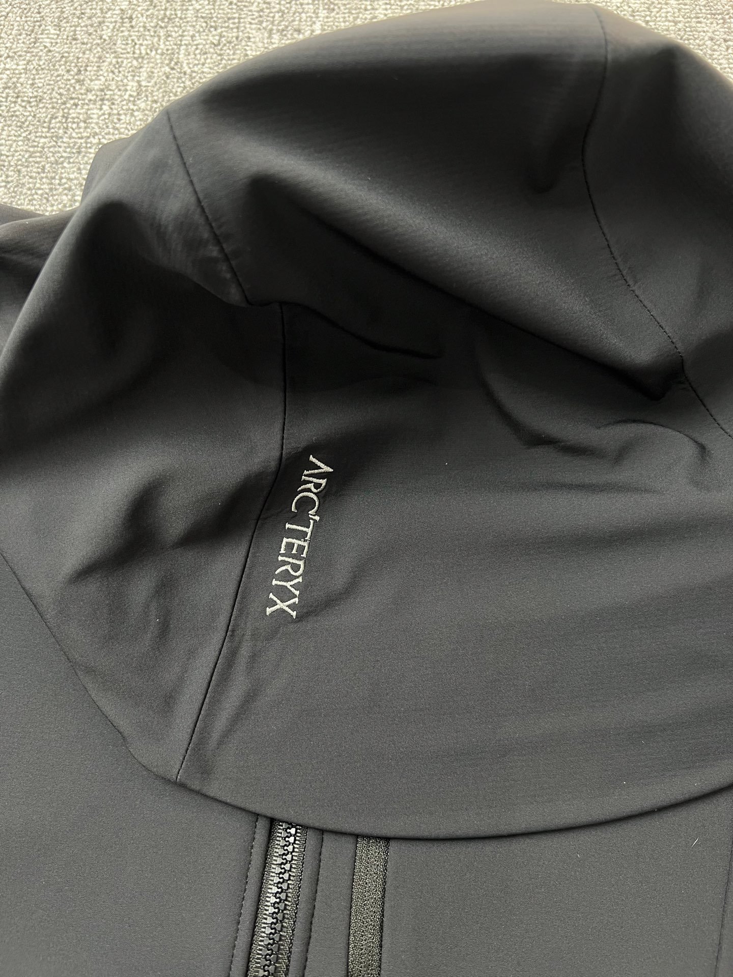 Featuring a sleek all-black colorway with matching hardware, this jacket blends high-performance utility with modern minimalism. The iconic embroidered Arc’teryx bird logo adds premium brand recognition, while the raglan sleeve construction allows for full range of motion. The fixed hood with ergonomic shaping provides reliable protection against wind and light rain.