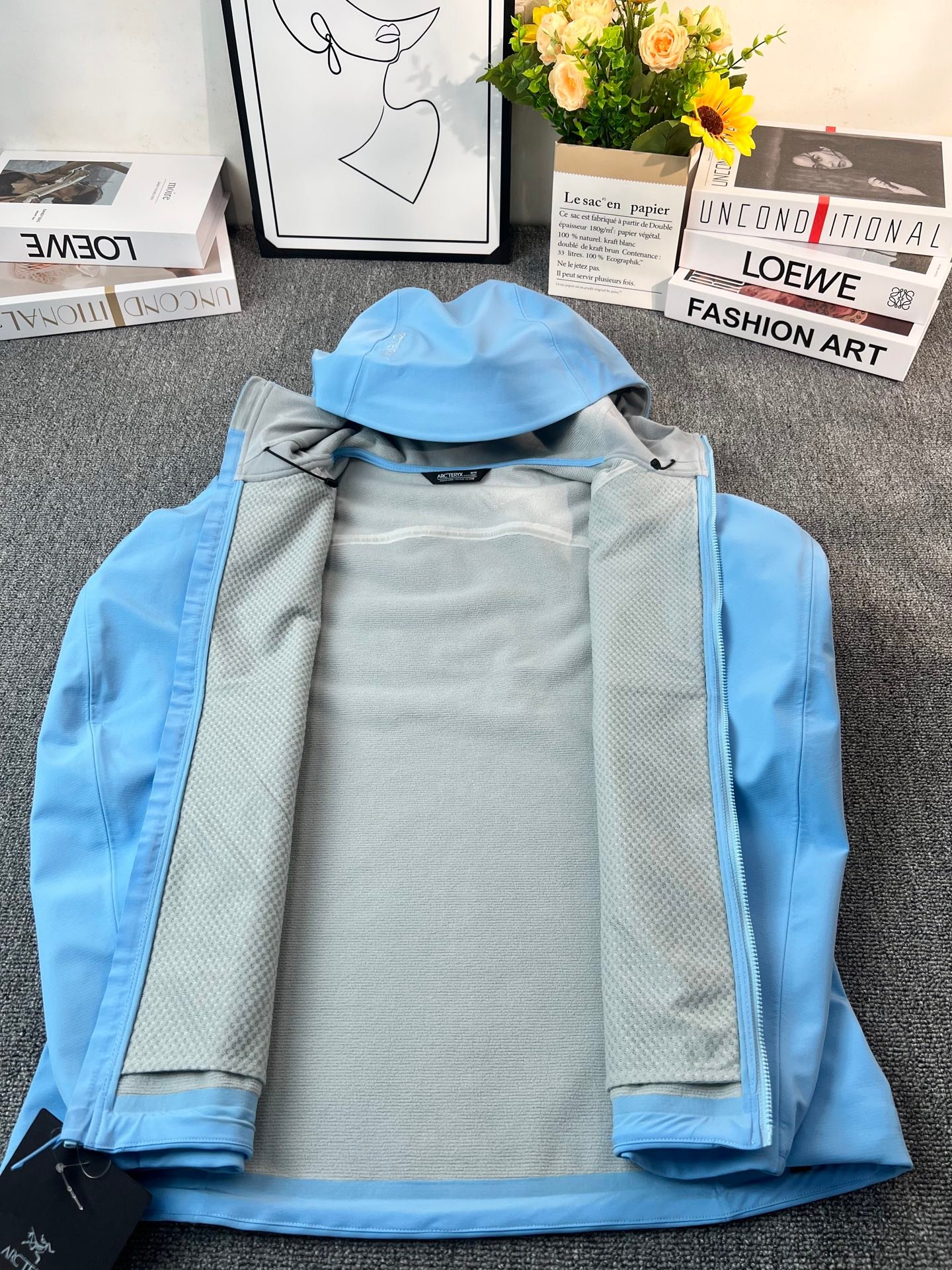 | Decoration | Embroidered Arc’teryx Bird Logo, Contrast Light Blue Zipper |