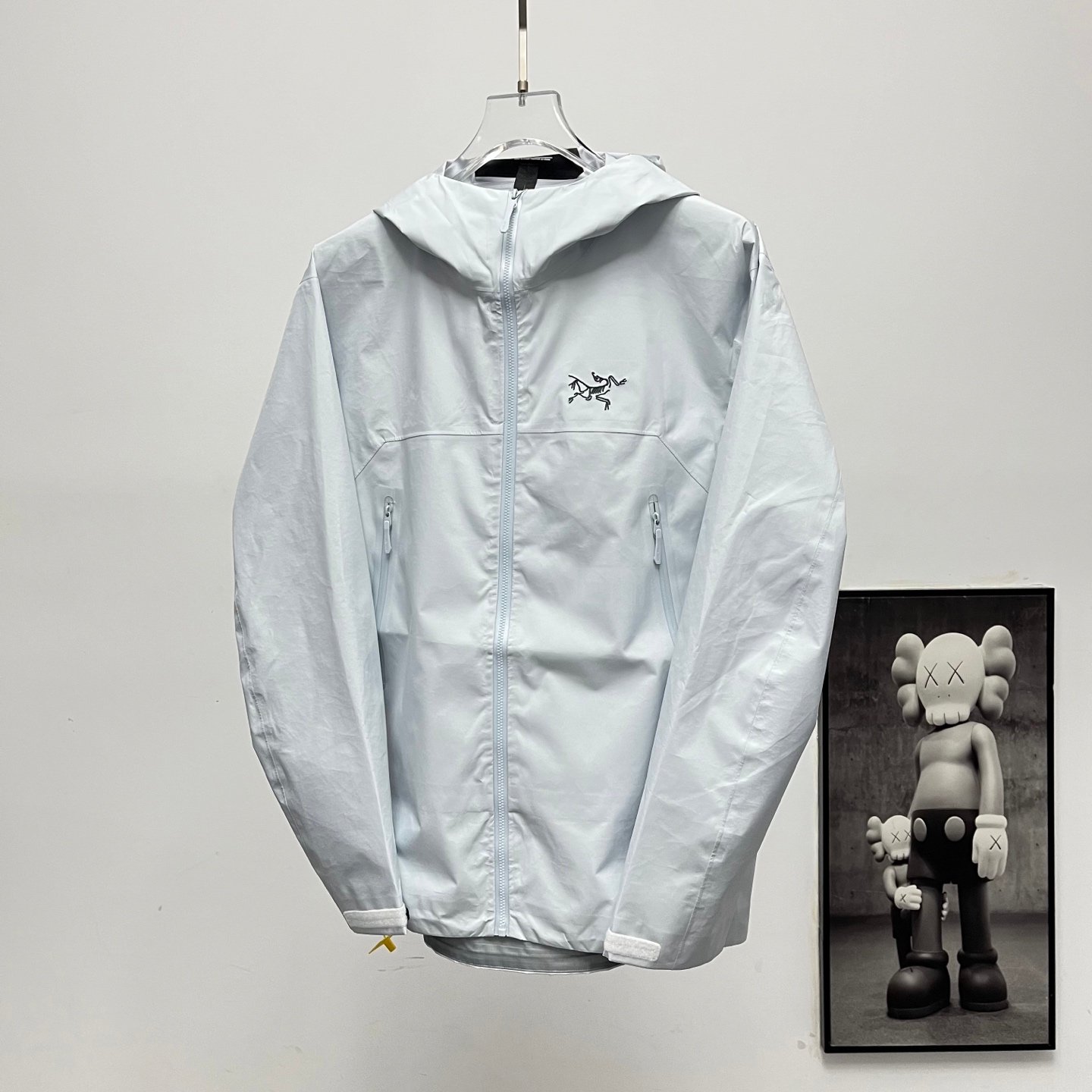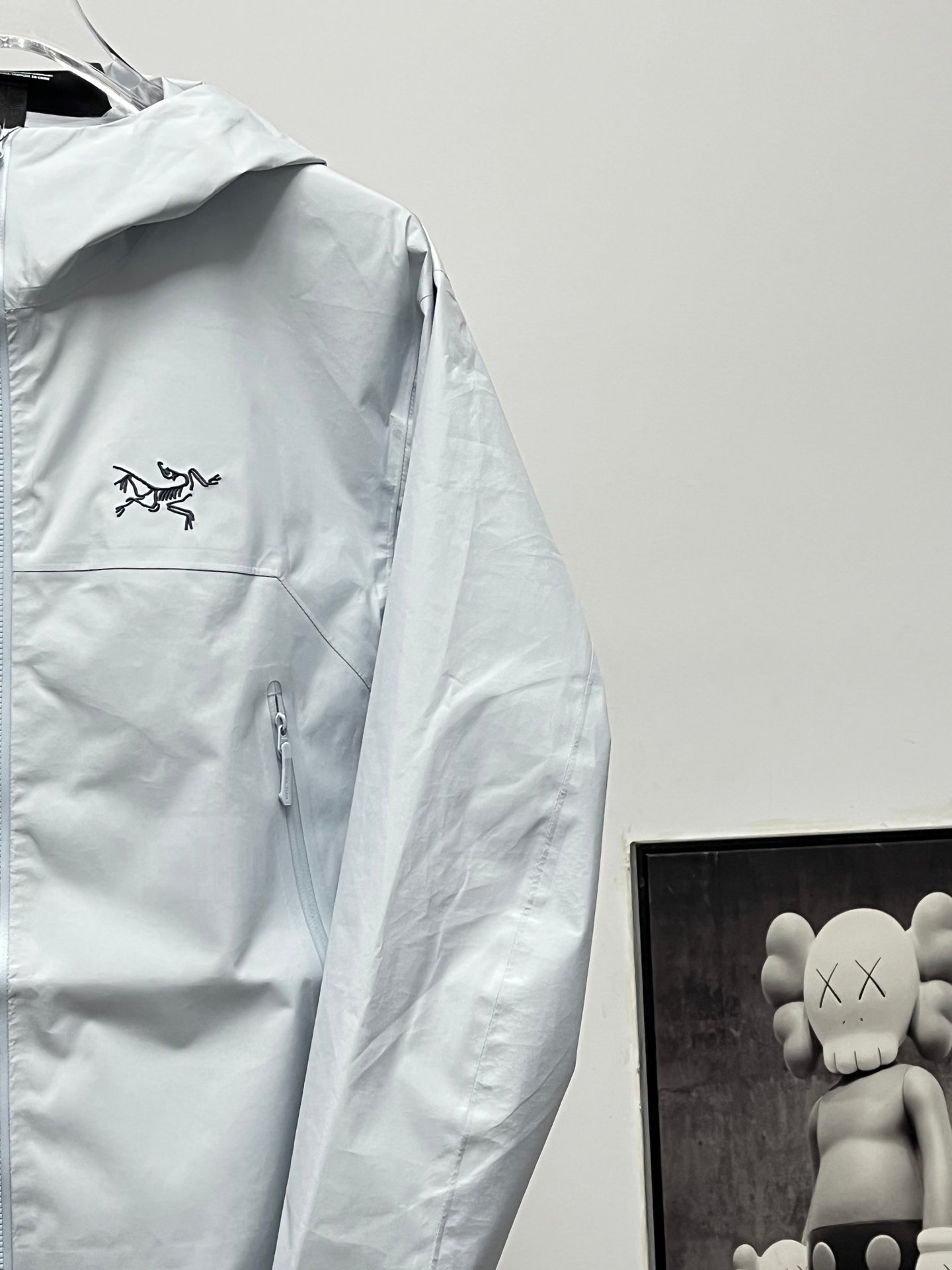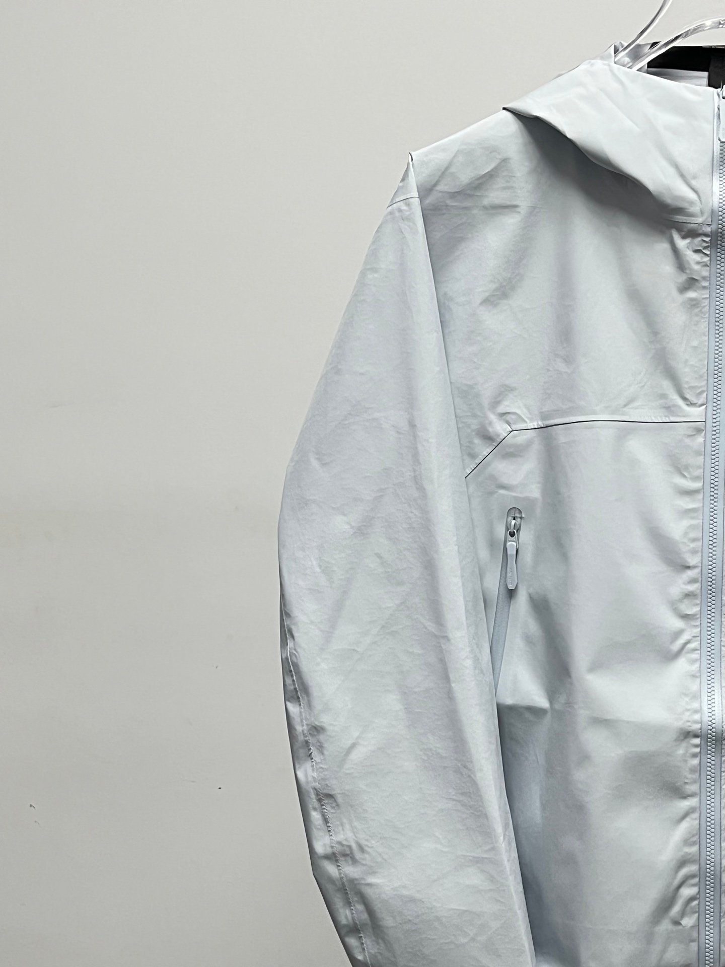 The timeless light ice blue hardshell design pairs effortlessly with outdoor gear, casual outfits, and travel ensembles, making it a versatile staple in any men’s wardrobe. Whether for daily commuting, hiking, or travel, this Arc’teryx jacket elevates any ensemble with technical performance and iconic style.