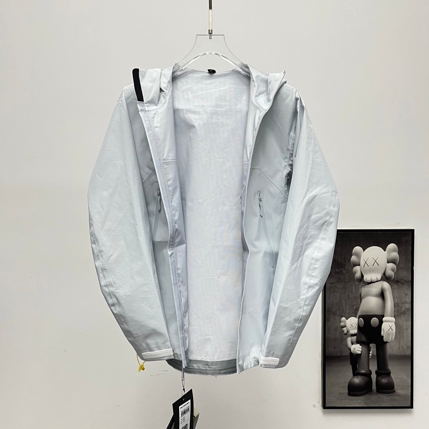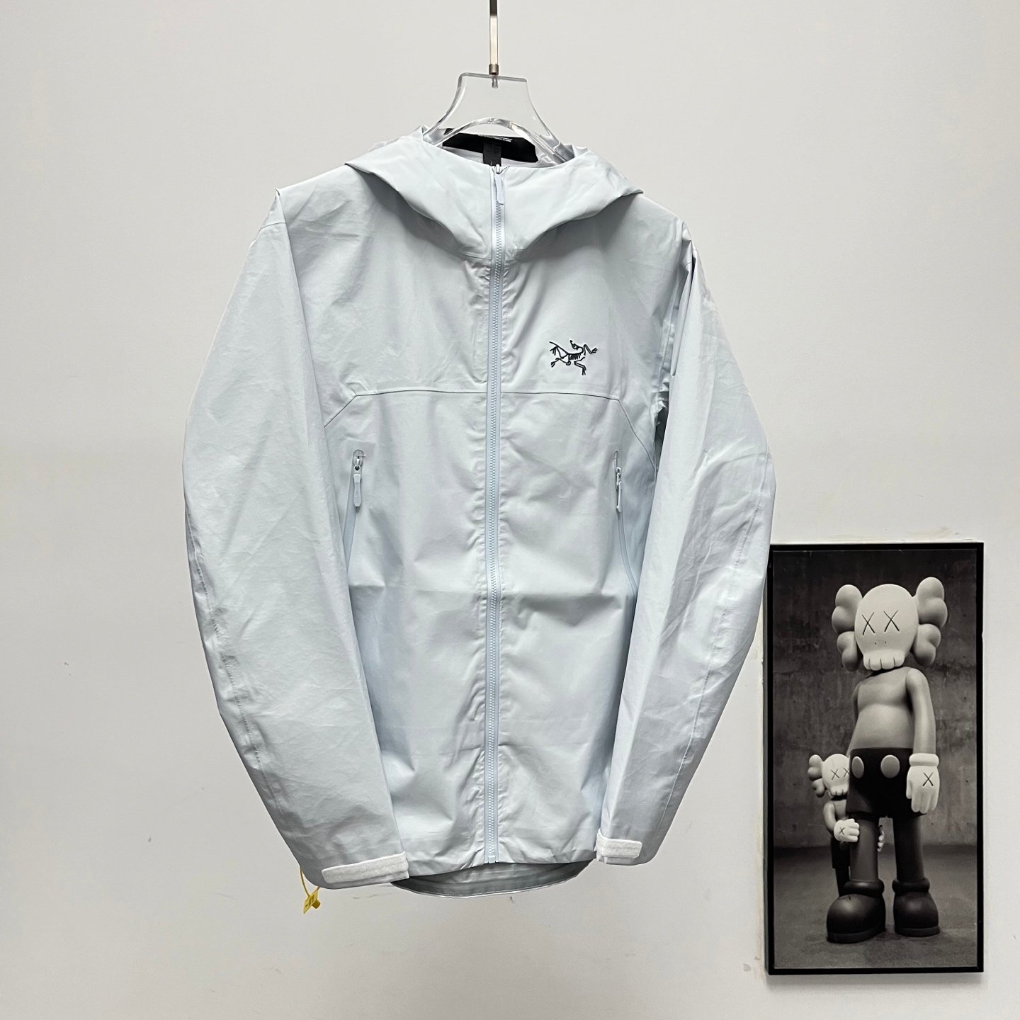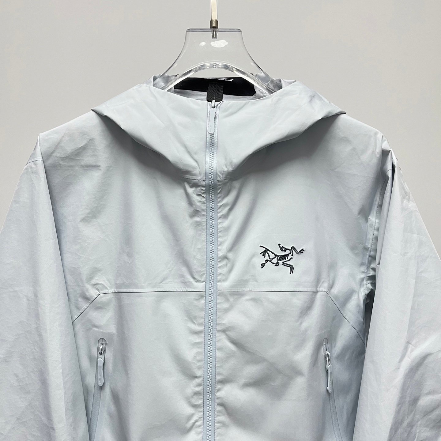 The timeless light ice blue hardshell design pairs effortlessly with outdoor gear, casual outfits, and travel ensembles, making it a versatile staple in any men’s wardrobe. Whether for daily commuting, hiking, or travel, this Arc’teryx jacket elevates any ensemble with technical performance and iconic style.