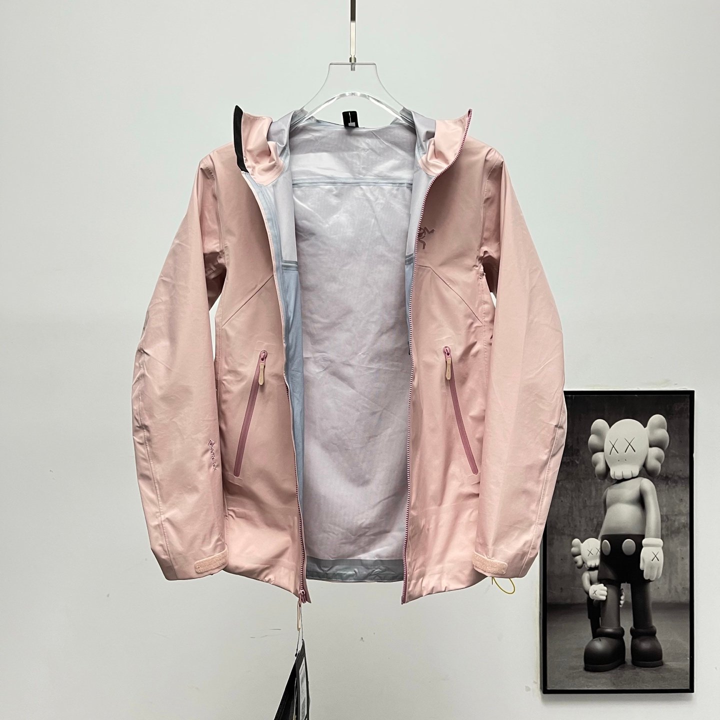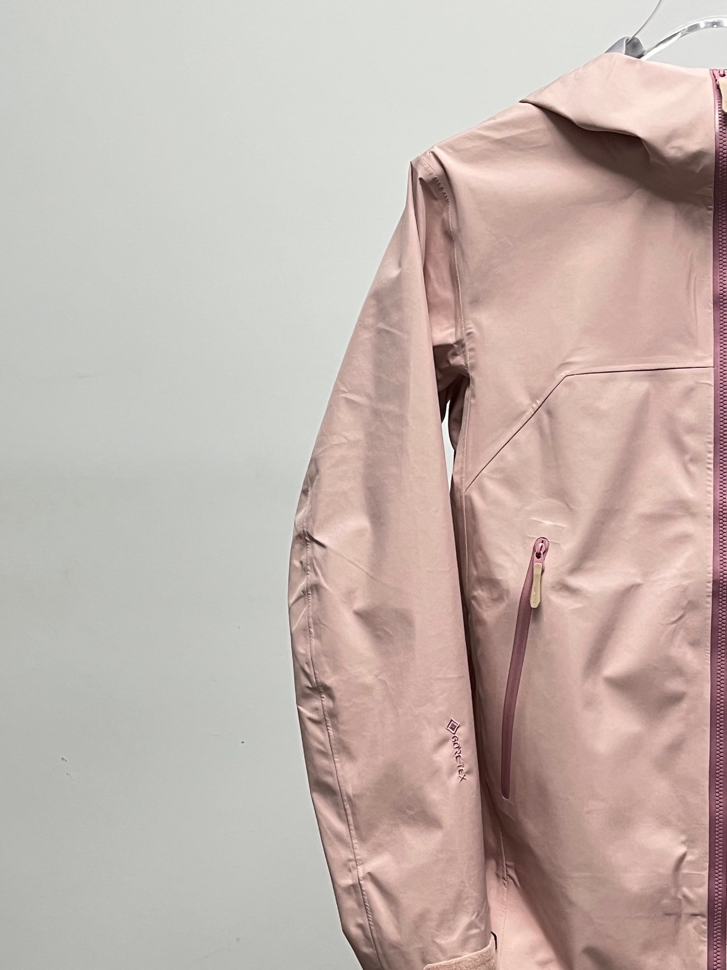 The timeless blush pink hardshell design pairs effortlessly with outdoor gear, casual outfits, and travel ensembles, making it a versatile staple in any women’s wardrobe. Whether for daily commuting, hiking, or travel, this Arc’teryx jacket elevates any ensemble with technical performance and iconic style.