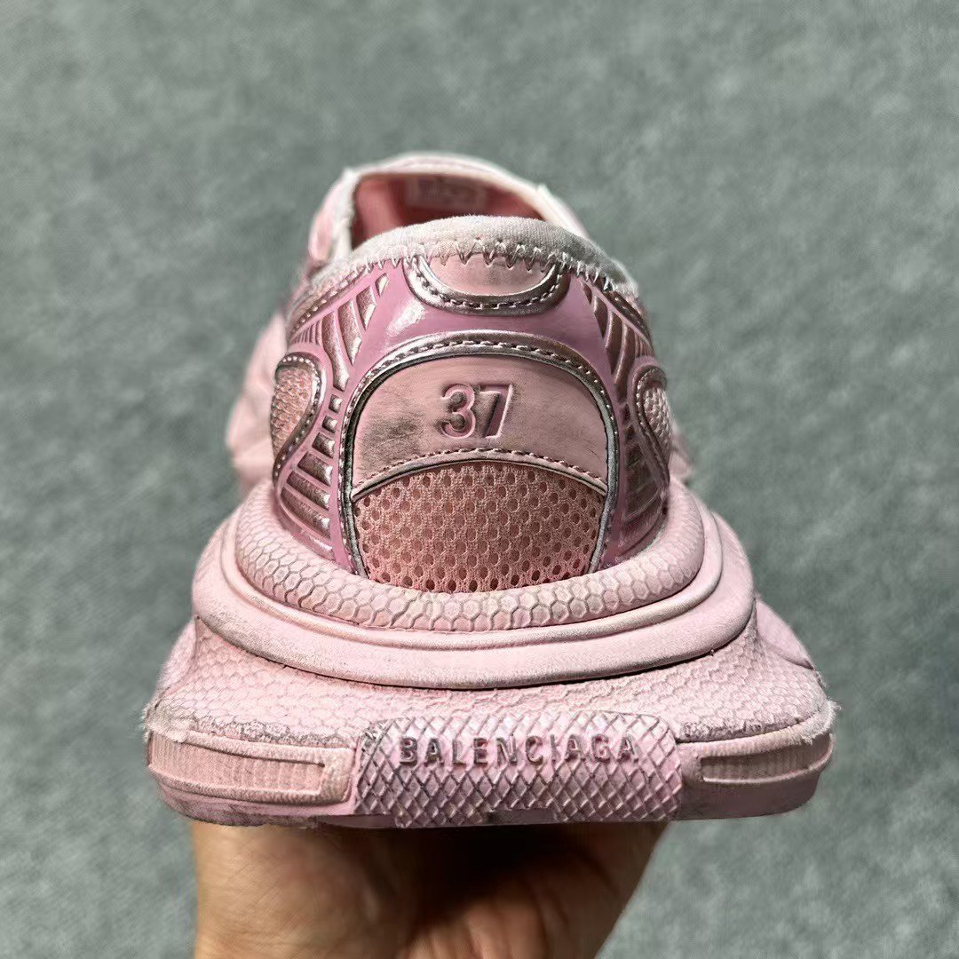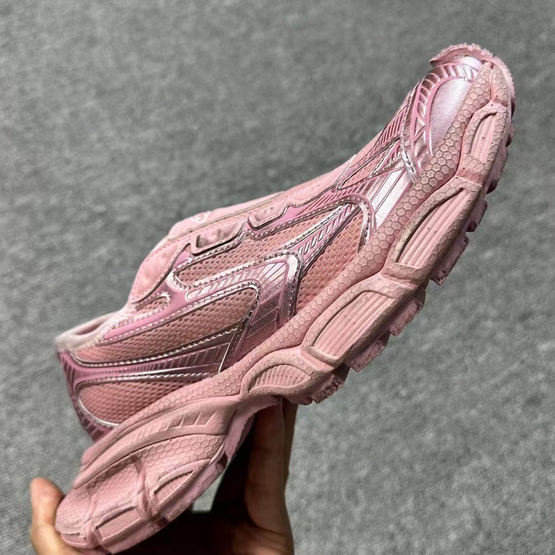 Balenciaga 3XL Pink Silver Mesh & Leather Slip-On Sneakers, Distressed Retro Chunky Luxury Casual Women’s Shoes