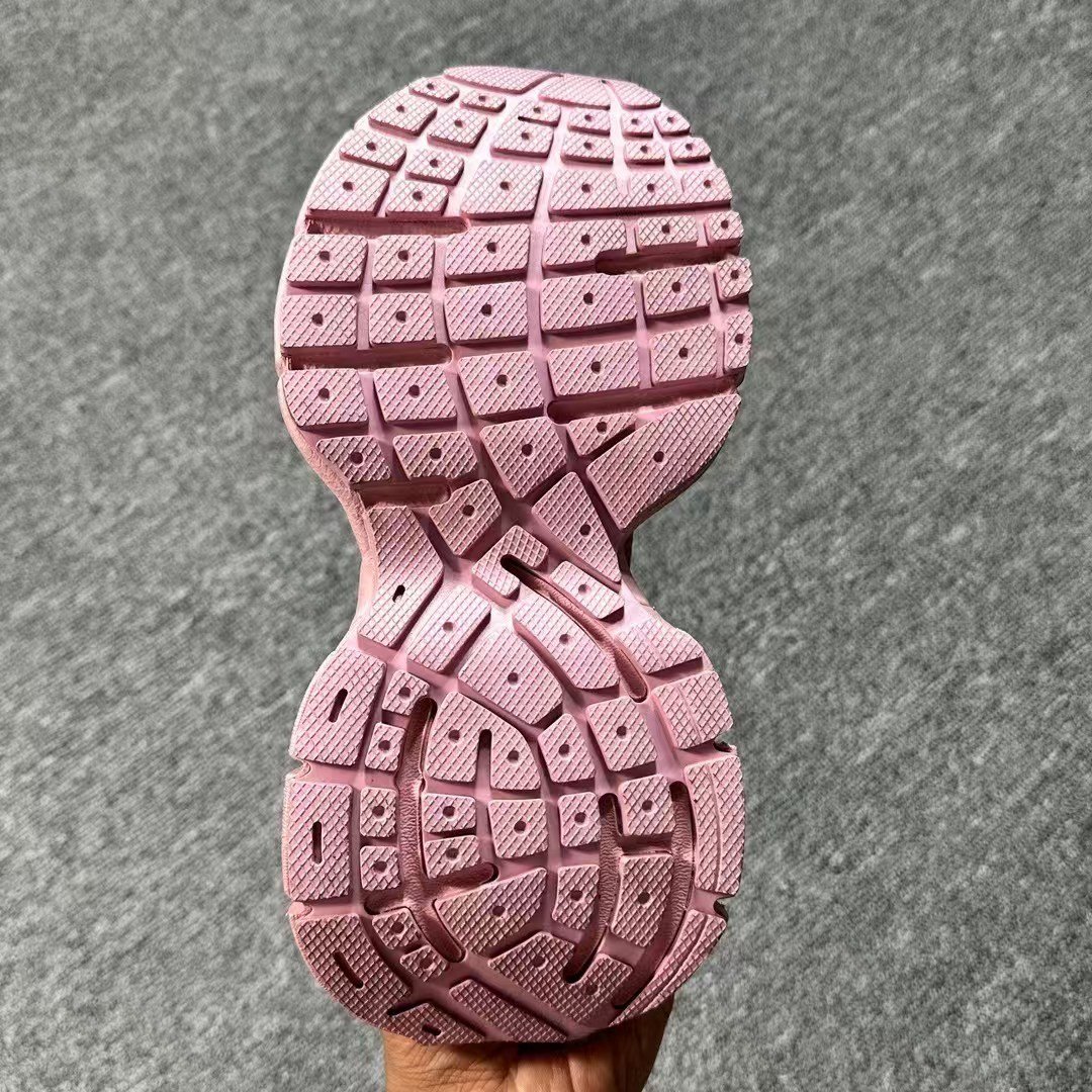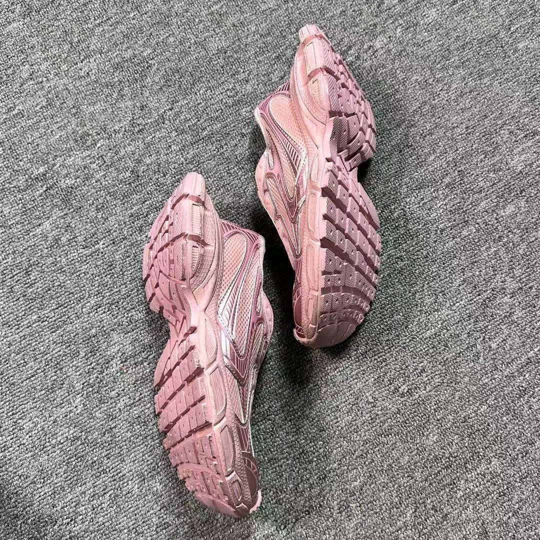 The iconic BALENCIAGA logo is embossed on the heel tab and outsole, with the signature 3XL motif on the upper, authenticating the luxury status. The clean pink-silver colorway offers versatility, pairing effortlessly with casual wear, streetwear, or high-fashion ensembles.