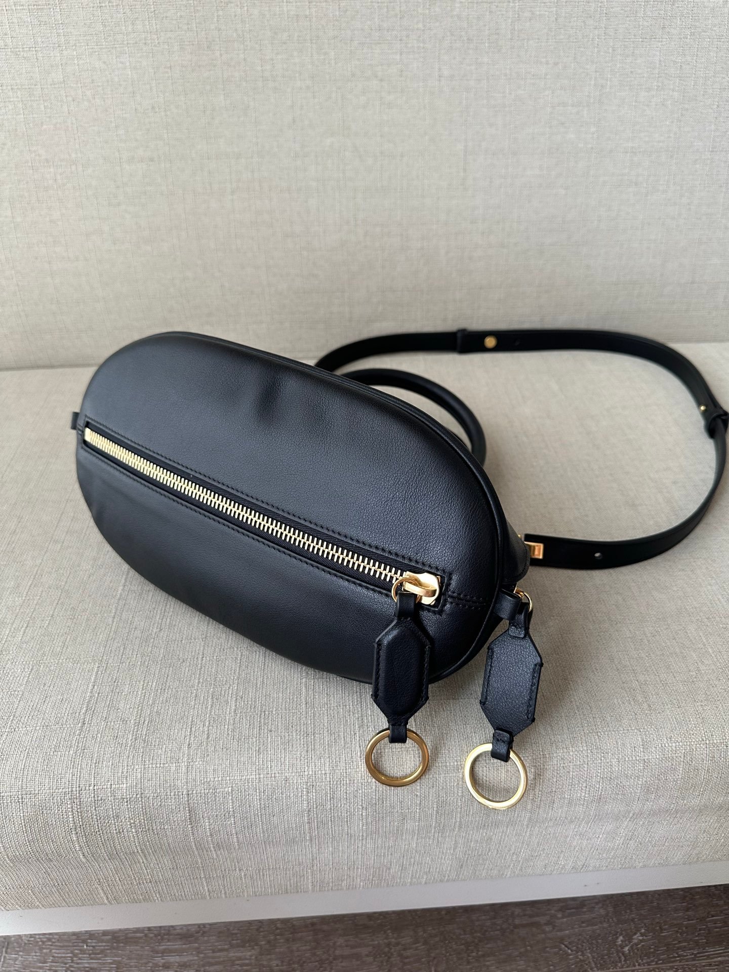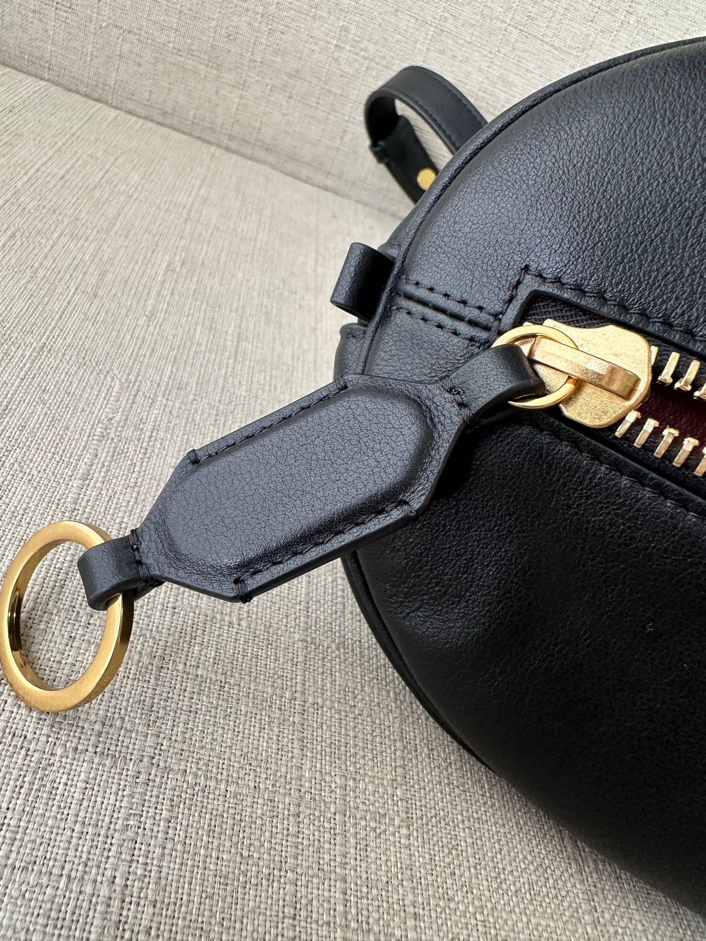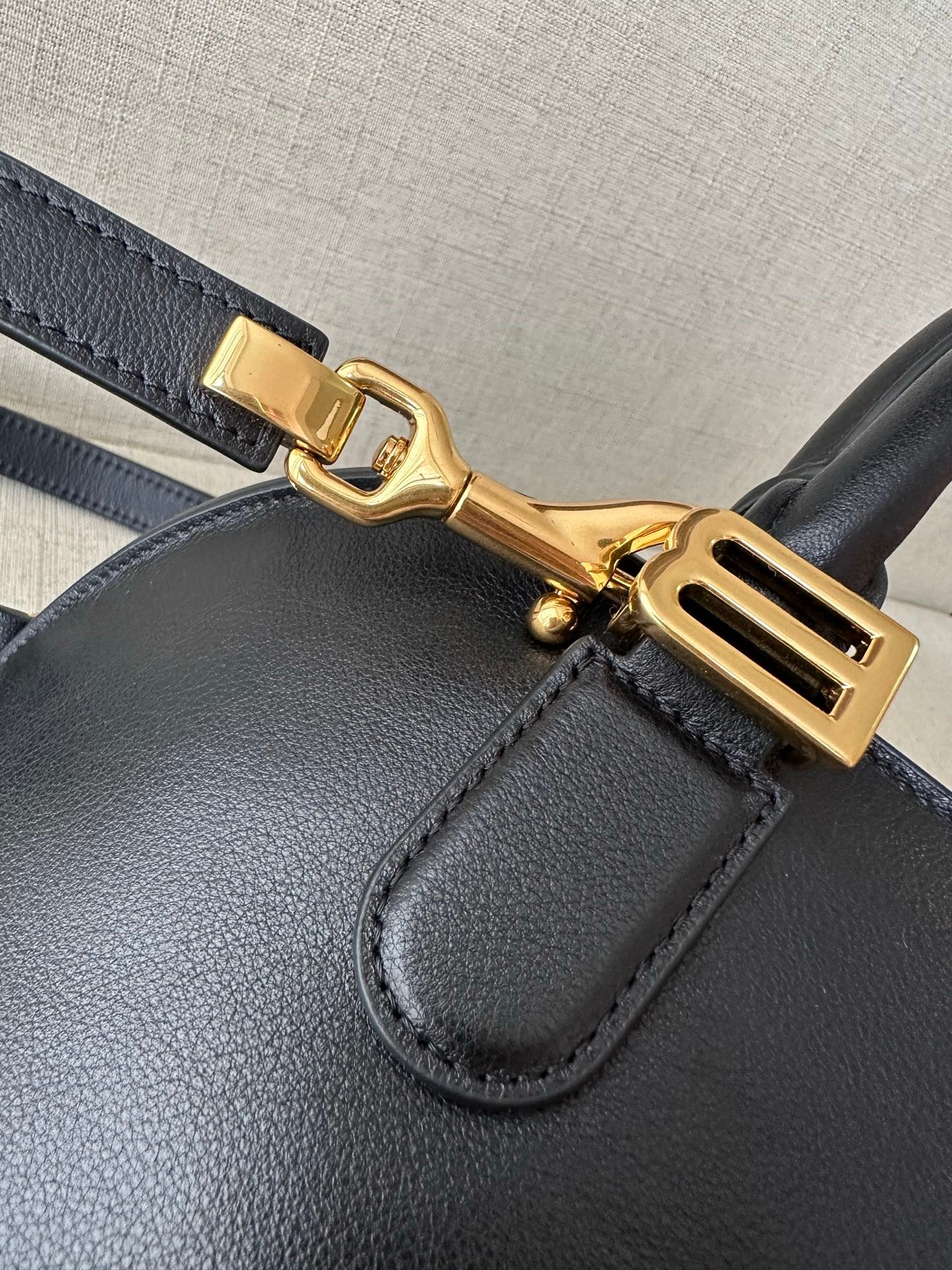 Crafted from durable, soft full-grain calfskin leather with a pebbled texture, the bag offers exceptional scratch resistance, shape retention, and a luxurious hand feel. The precise contrast stitching and gold-tone hardware add a refined, handcrafted touch, elevating the bag’s luxury status.