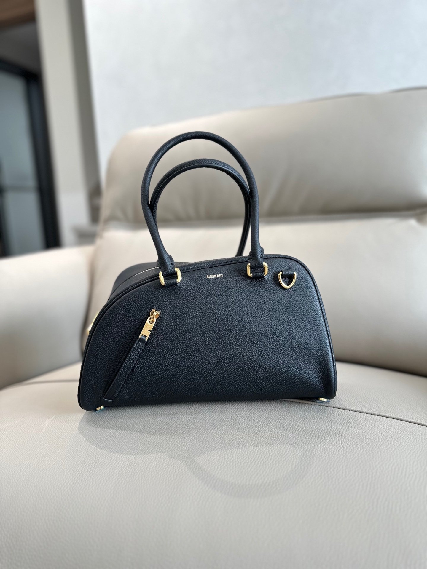 Be the first to review “Burberry Black Grained Calfskin Leather Boston Bag, Gold Hardware Luxury Handbag”