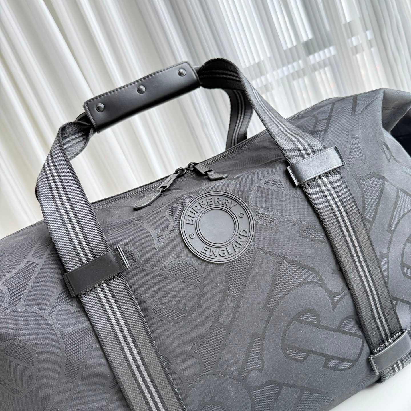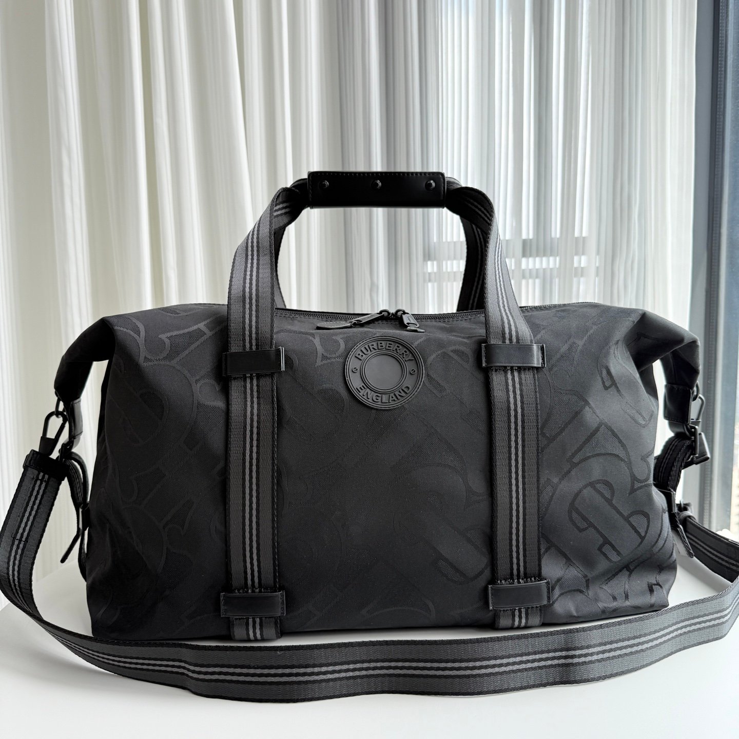 Burberry Black Monogram Jacquard Duffle Bag, Detachable Strap Luxury Travel Gym Bag