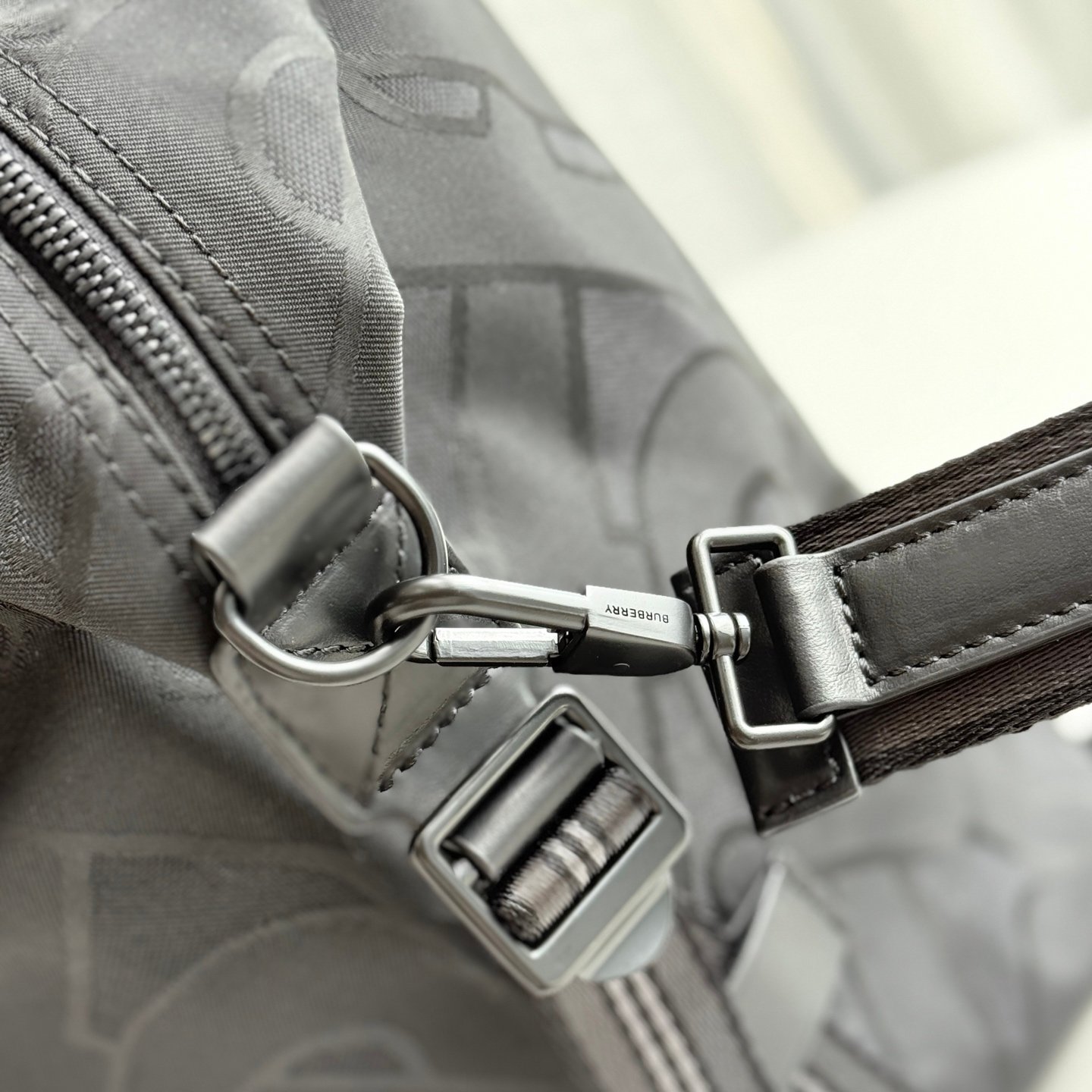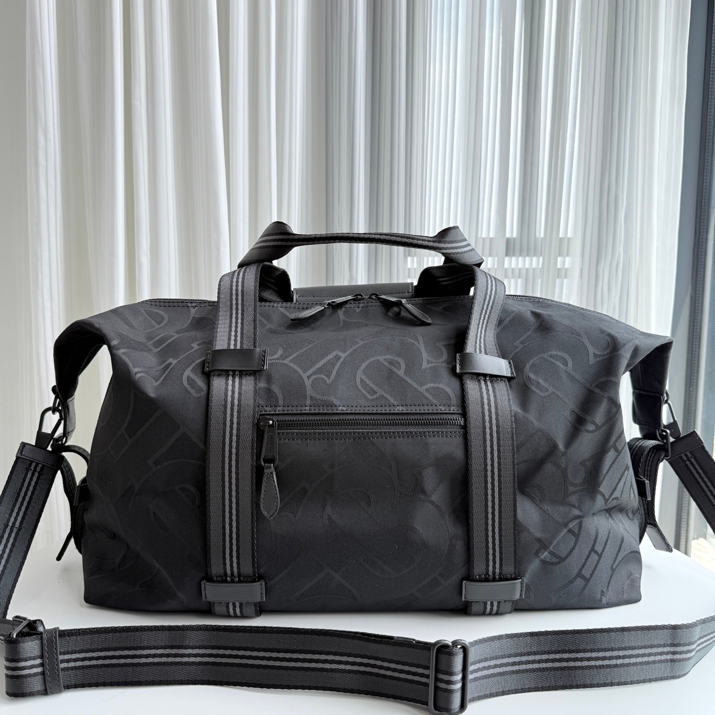 This duffle embodies Burberry’s iconic British heritage design, featuring a sleek all-black silhouette with a subtle embossed monogram jacquard pattern. The spacious, structured profile blends timeless luxury with functional travel style, perfect for weekend getaways, gym sessions, and business trips.