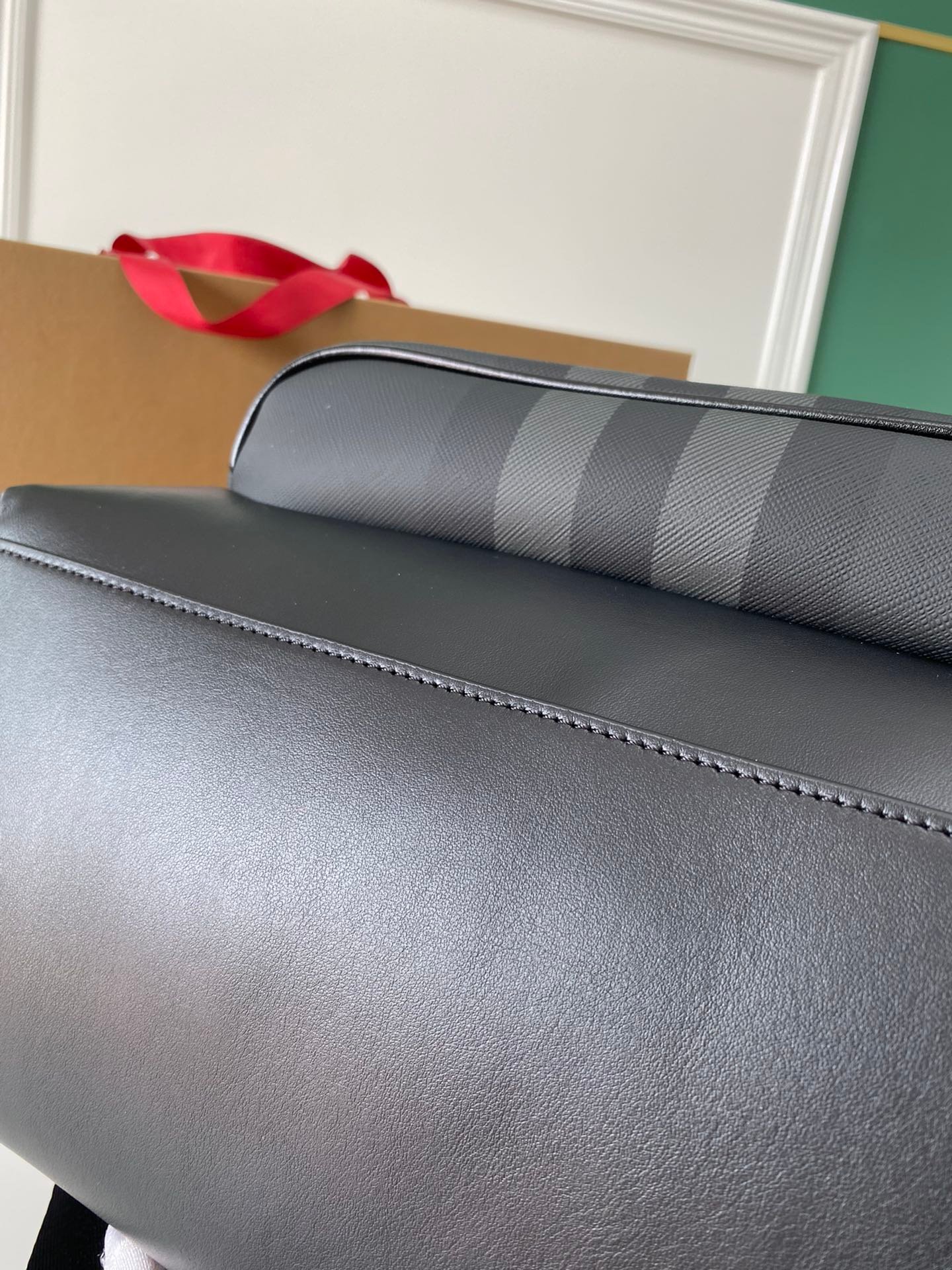 The iconic Burberry logo is embossed on the front pocket, authenticating the luxury status. The subtle dark check motif delivers a low-key, high-end aesthetic, making a sophisticated fashion statement for daily wear.