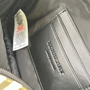 The iconic Burberry logo is embossed inside the main compartment, with the signature Vintage Check pattern authenticating the luxury status. The classic check motif is a timeless symbol of British style, making a subtle yet powerful fashion statement.