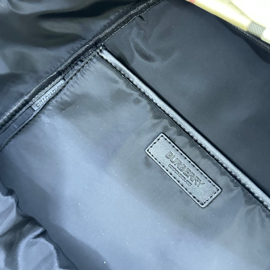 This backpack embodies Burberry’s iconic British luxury, featuring the signature Vintage Check canvas paired with sleek black leather trim. The classic rounded silhouette blends timeless elegance with functional everyday use, perfect for commuting, travel, school, and casual outings.