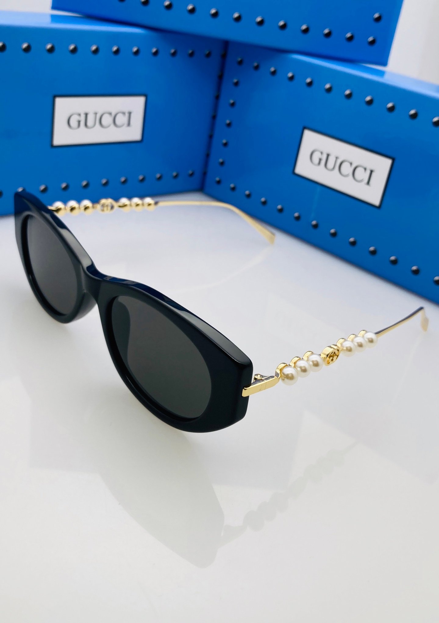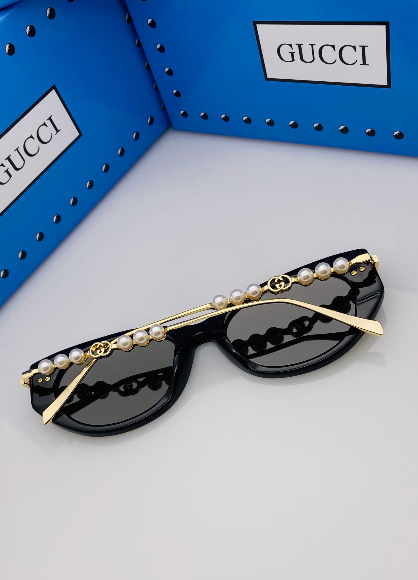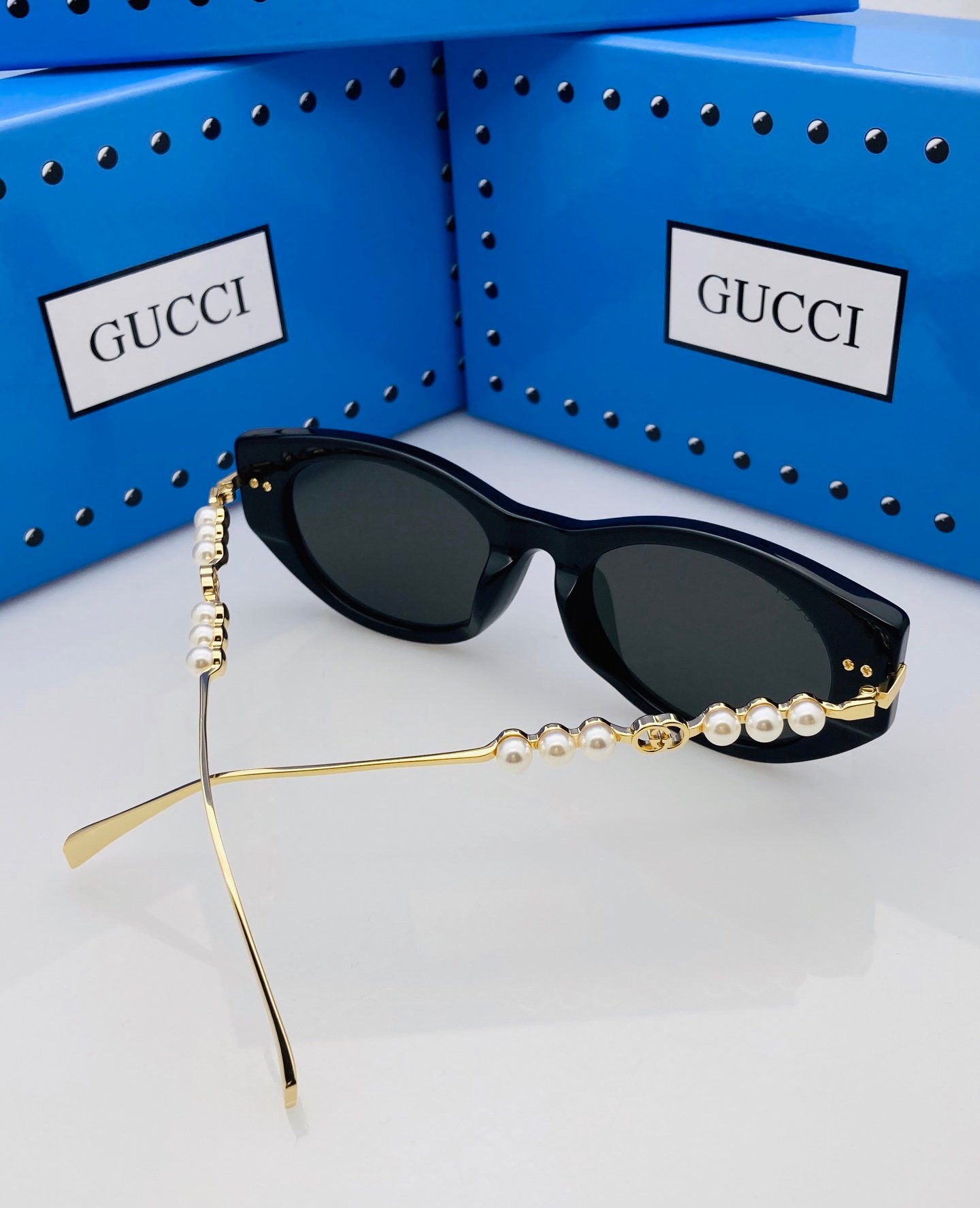 - Signature Cat Eye Design with Pearl Double G Embellishment:Features a bold retro cat eye silhouette in polished black acetate, paired with a stunning inlaid pearl chain with iconic Double G logos inside the lens and sleek gold-tone metal temples. This exclusive detail creates a luxurious and feminine look, making it a statement accessory for fashion lovers.