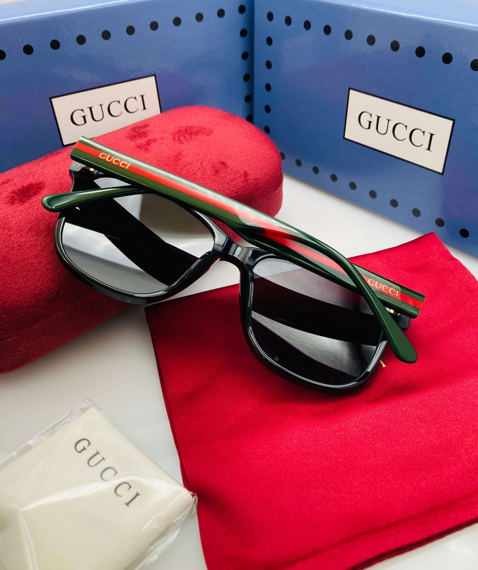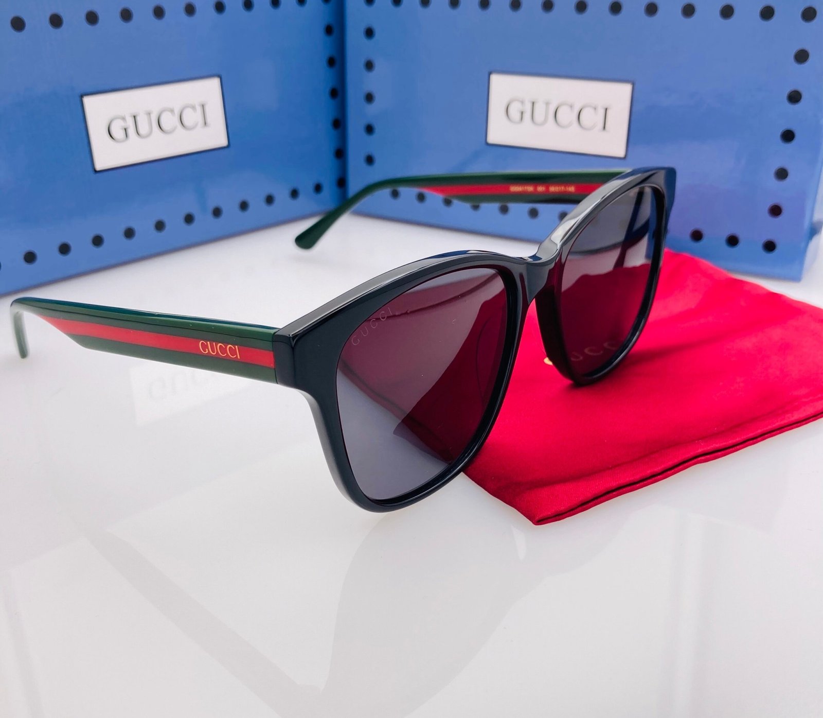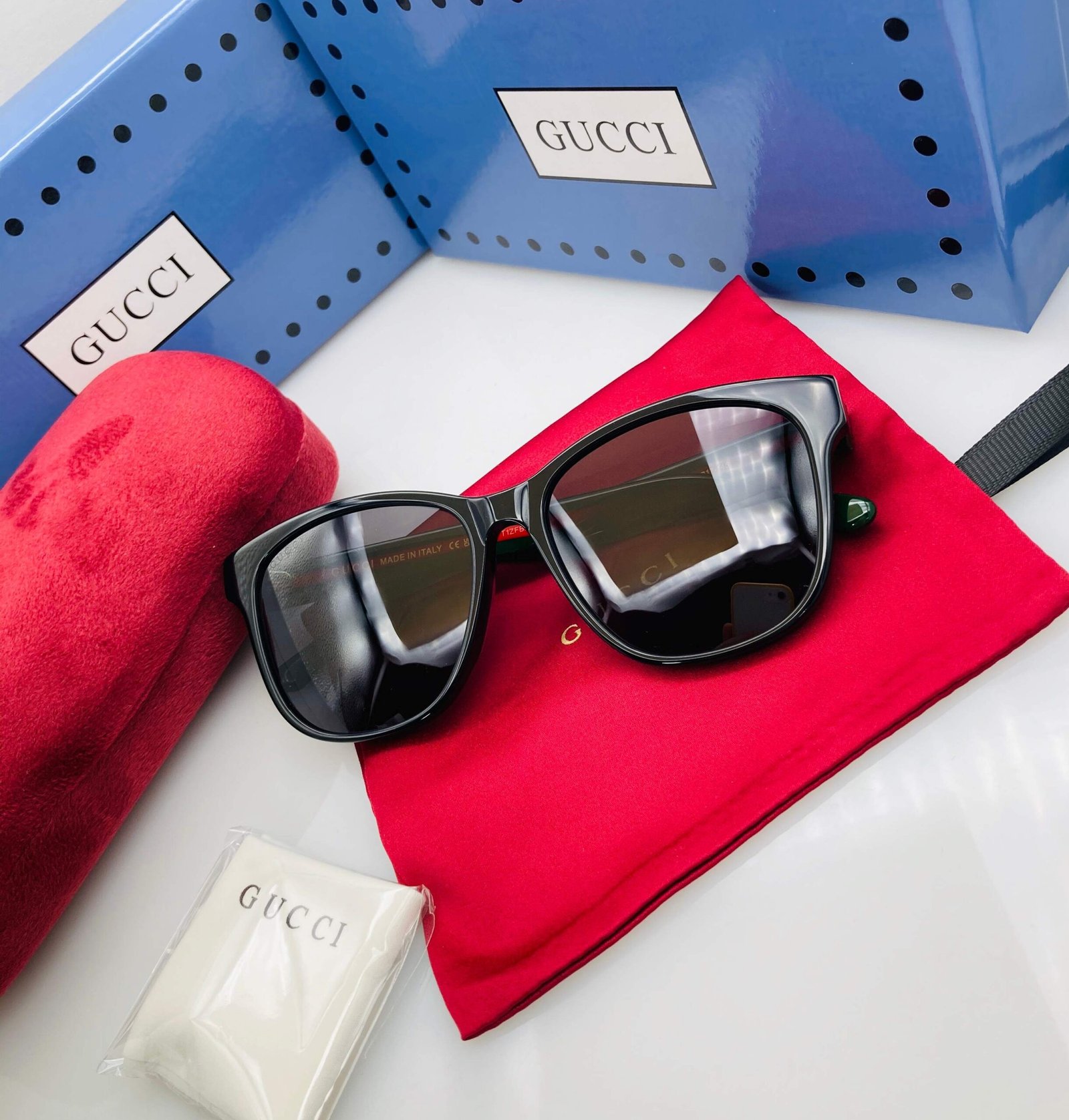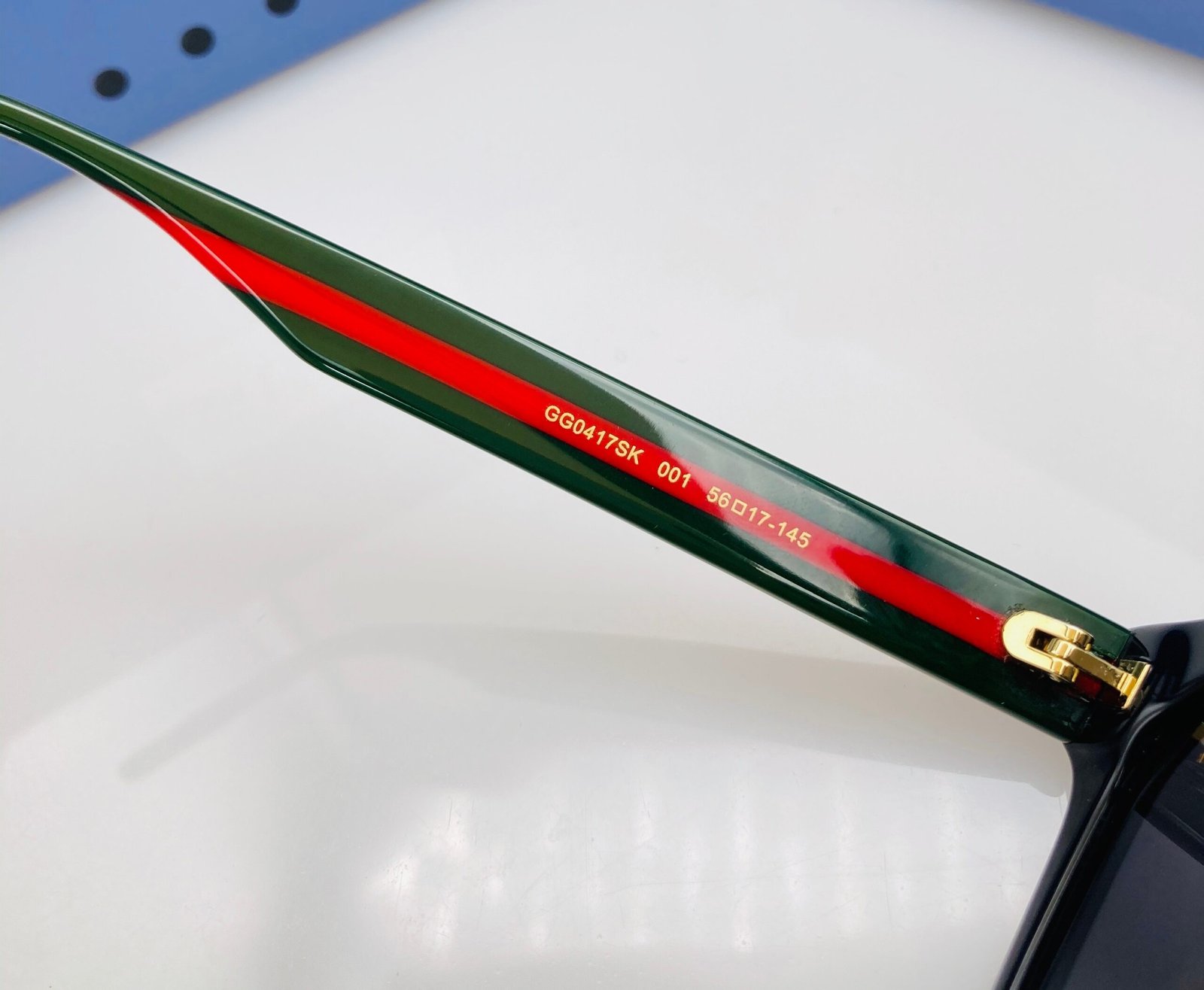 - Authentic GG0417SK Design with Signature Web Stripe:Features the iconic Gucci square silhouette in polished black acetate, accented with the brand’s legendary green and red web stripe on the temples and brow bar. The bold color contrast and embossed Gucci lettering deliver timeless luxury, making it a signature piece for both casual and sophisticated styles.