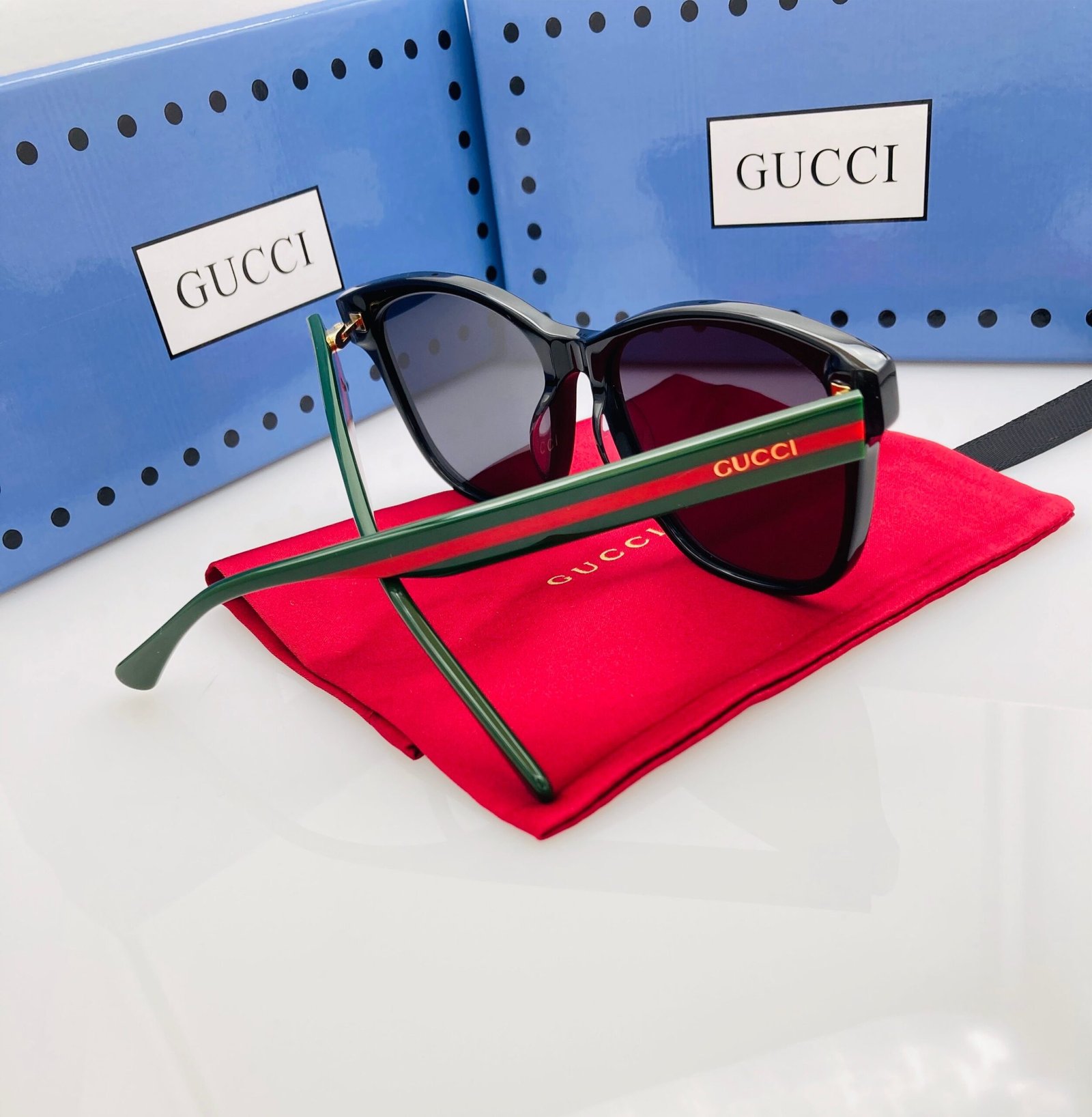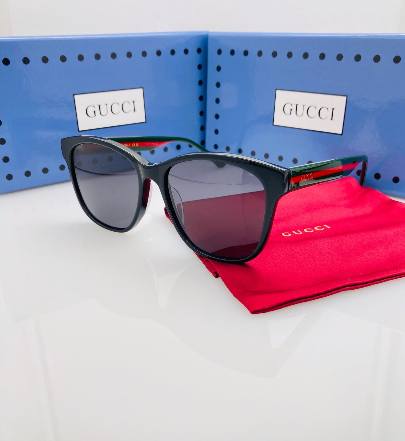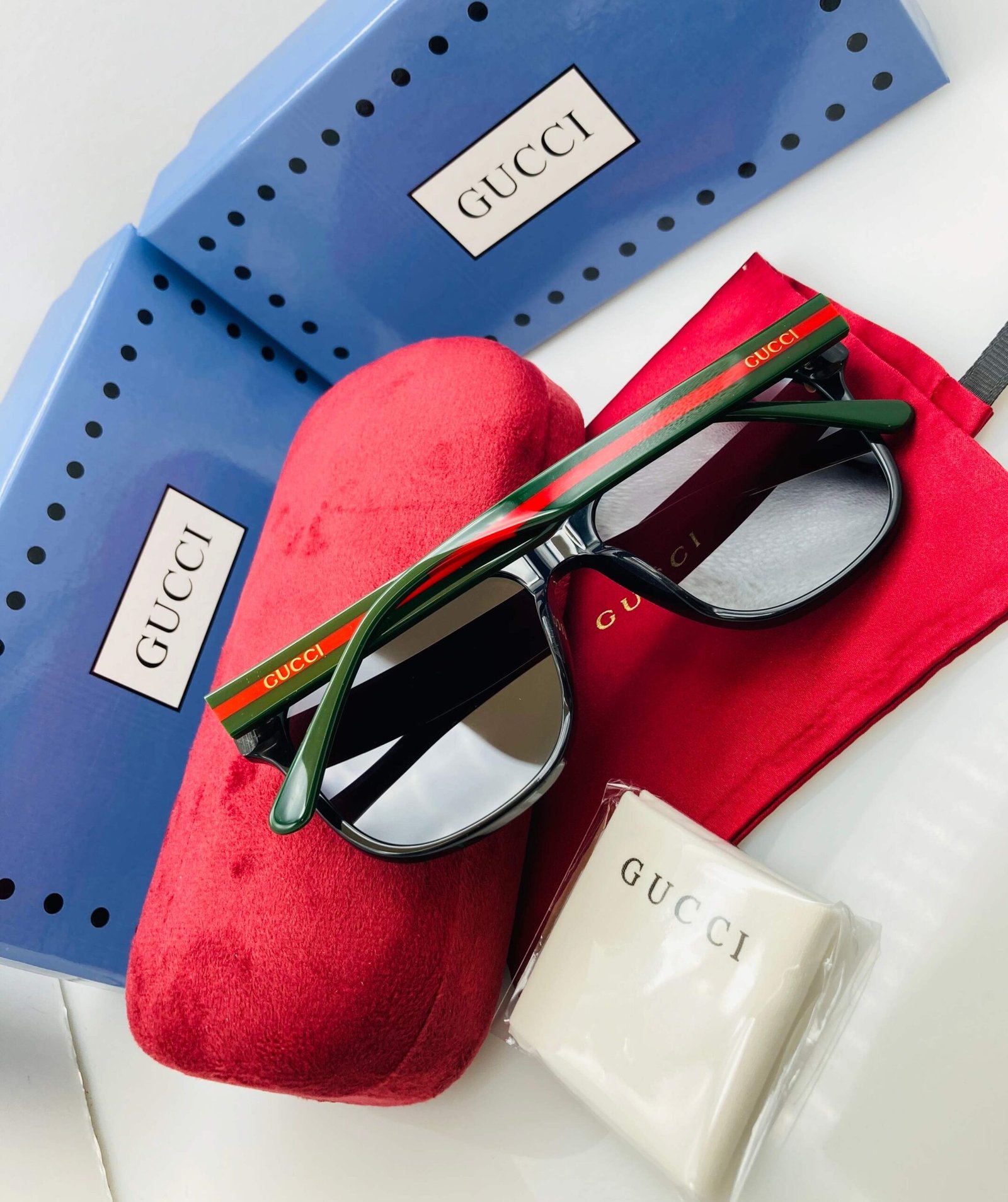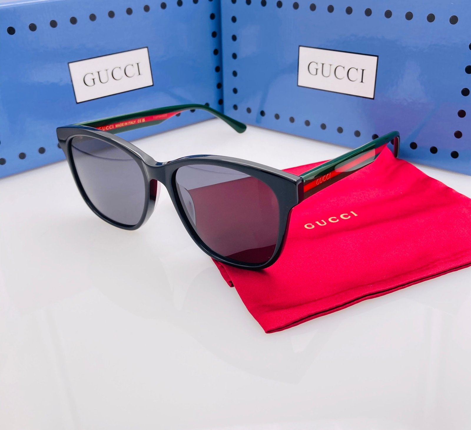 - Authentic GG0417SK Design with Signature Web Stripe:Features the iconic Gucci square silhouette in polished black acetate, accented with the brand’s legendary green and red web stripe on the temples and brow bar. The bold color contrast and embossed Gucci lettering deliver timeless luxury, making it a signature piece for both casual and sophisticated styles.