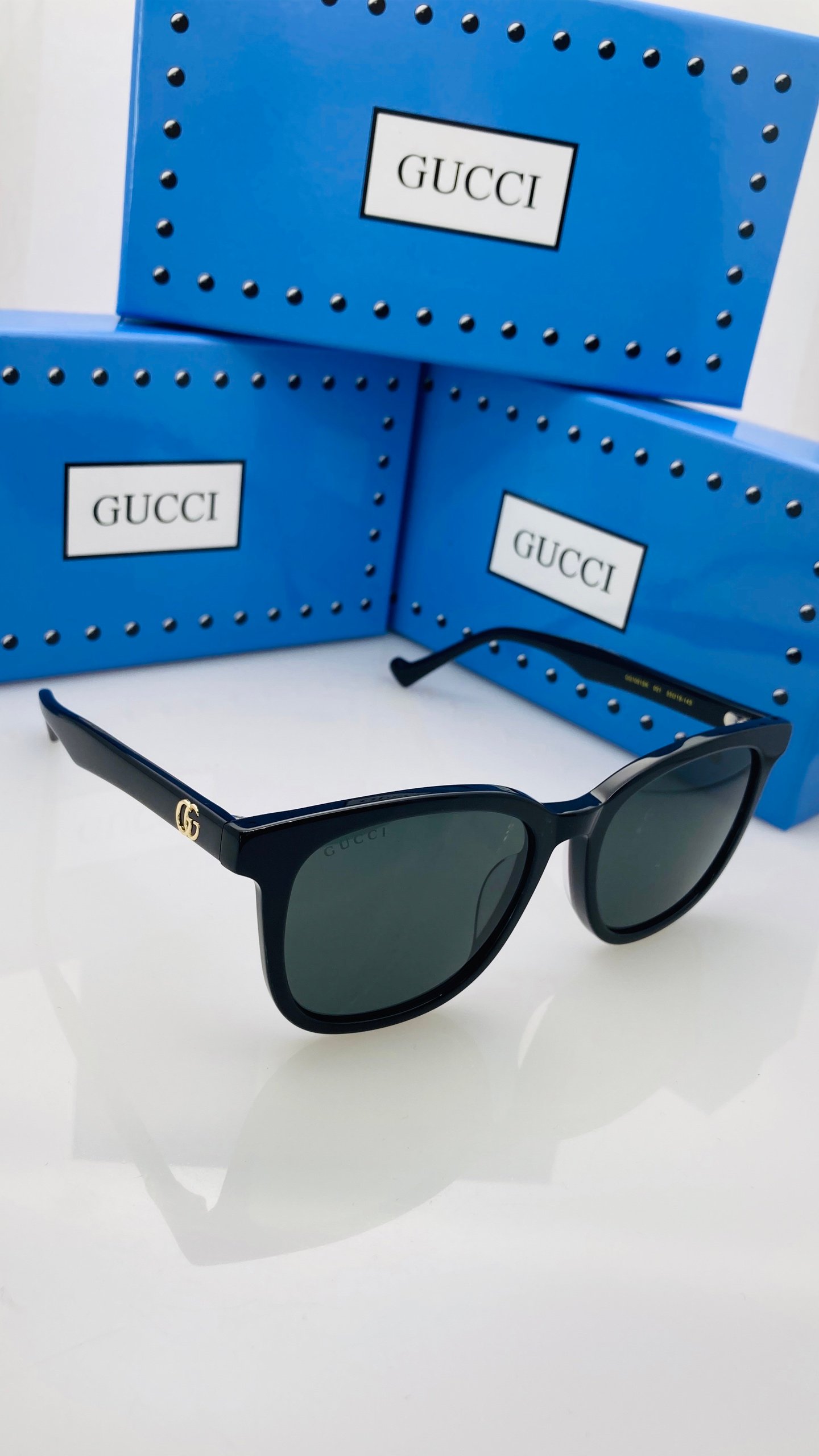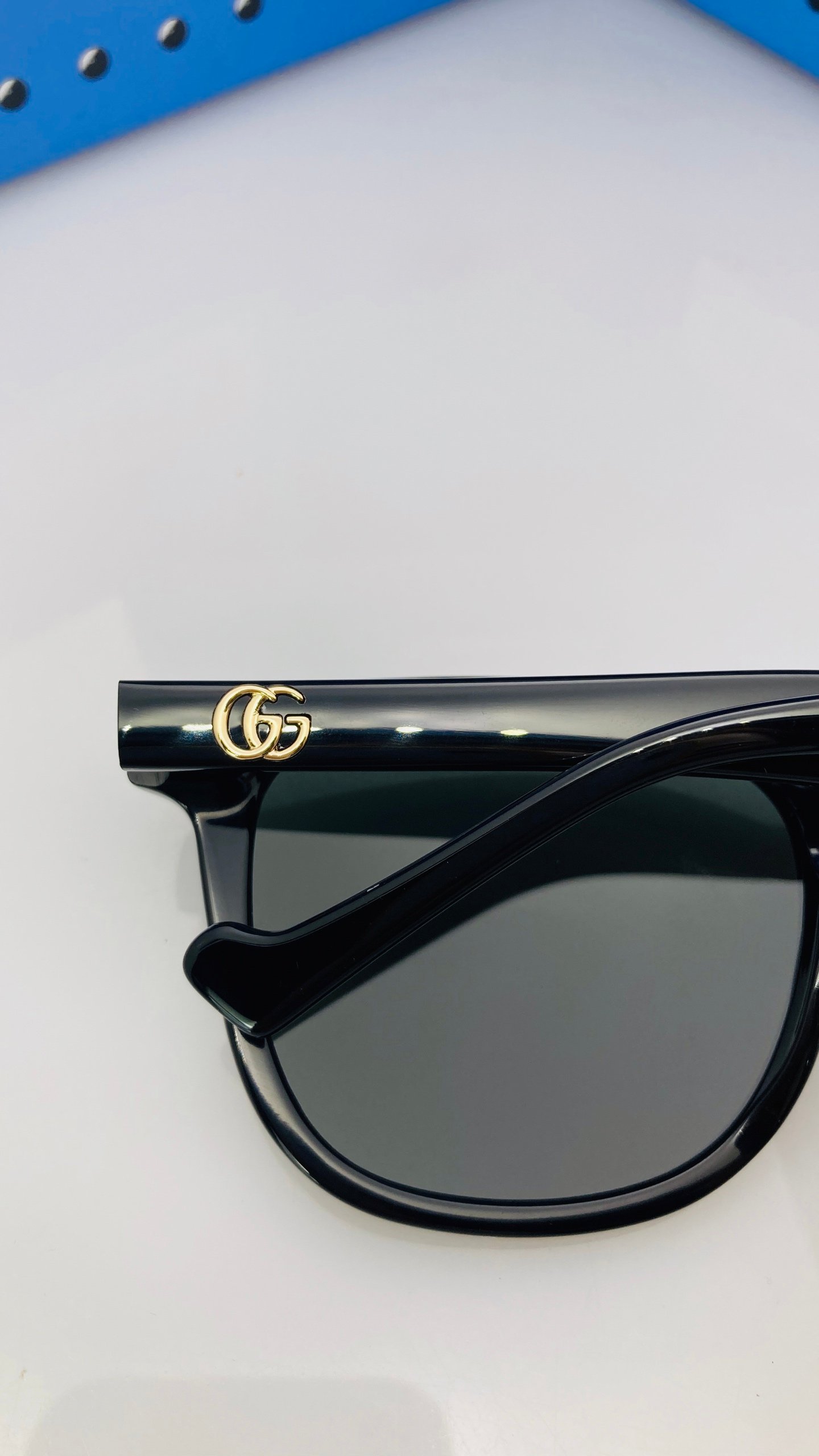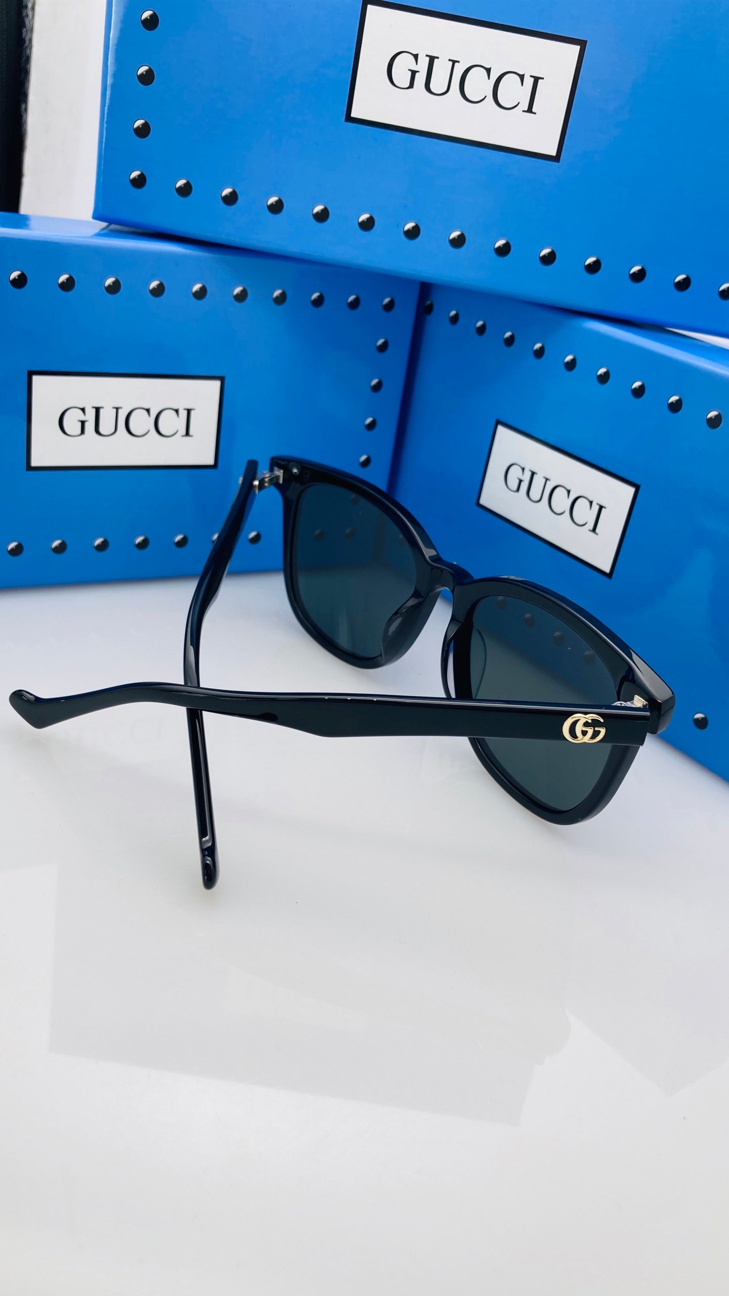 - Iconic Gucci Design: Features a bold, modern square silhouette with a polished black acetate frame and sleek grey lenses. The subtle laser-engraved Gucci logo on the lens and temple adds a touch of luxury, perfect for elevating any casual or formal outfit.