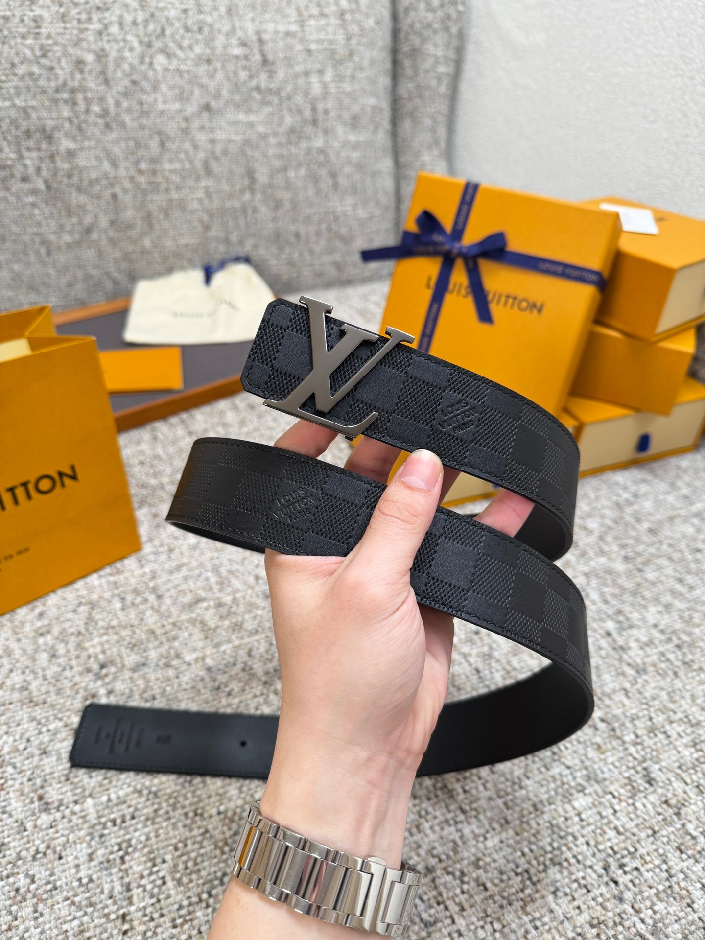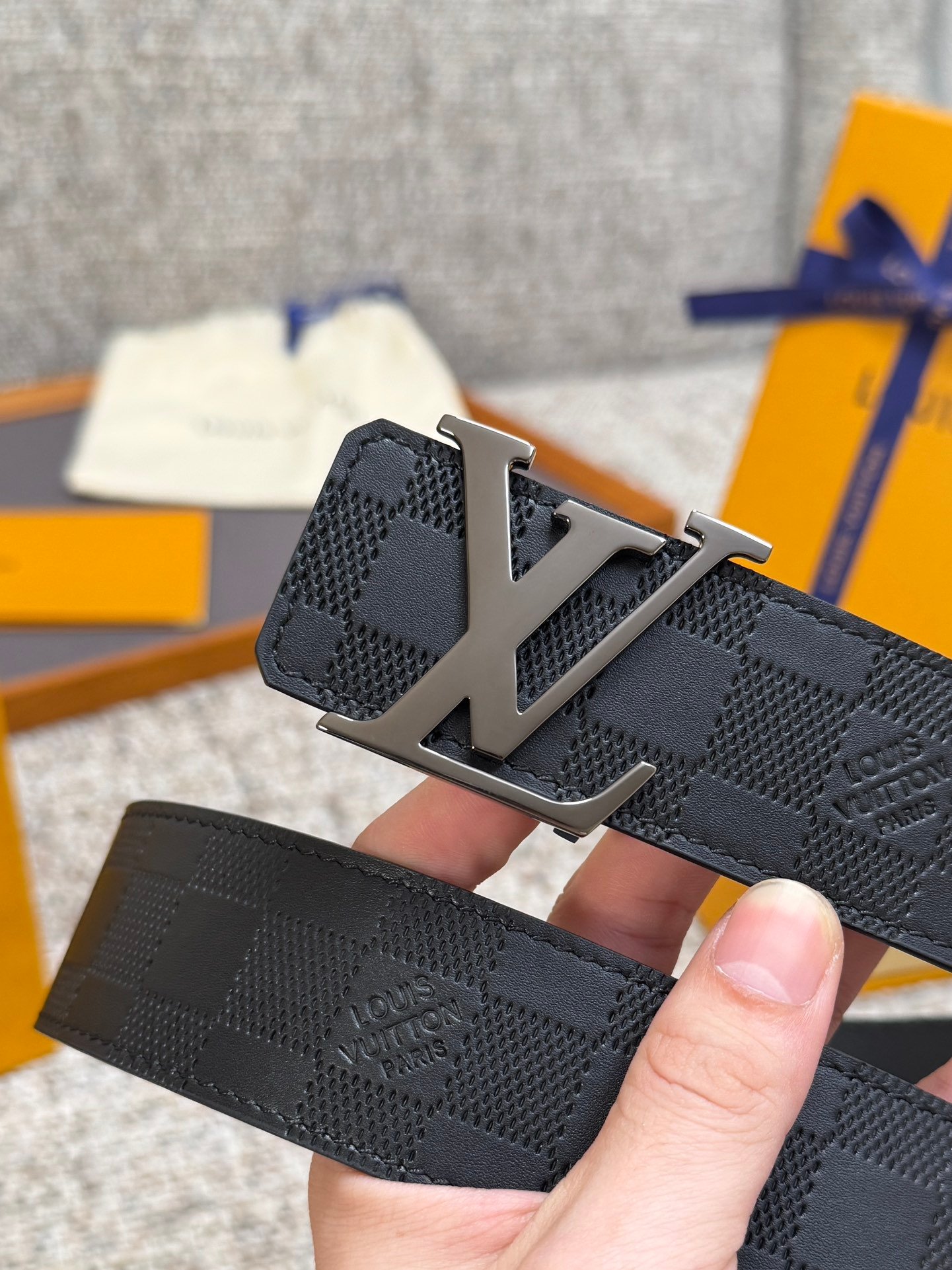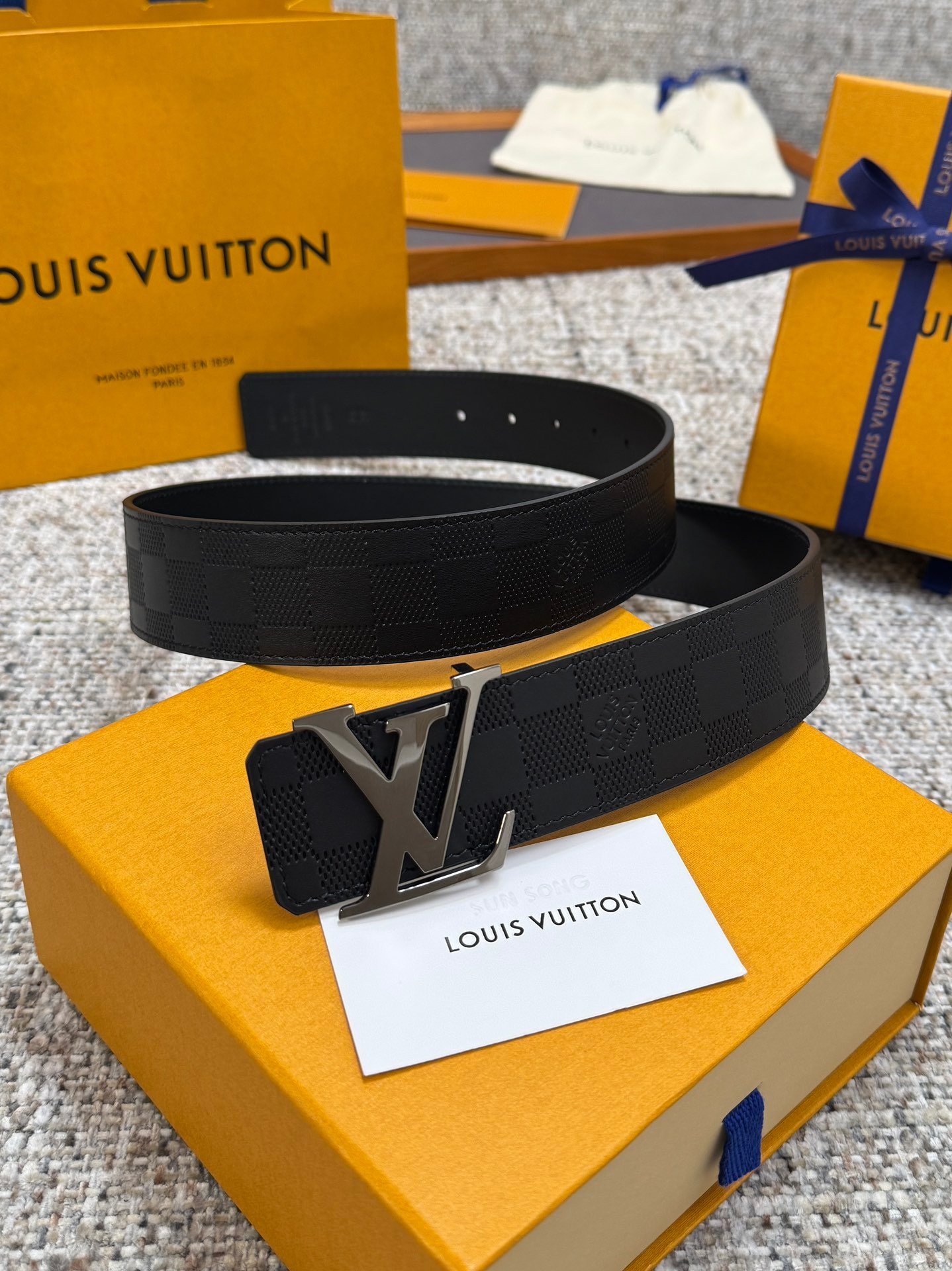 Louis Vuitton 3.5cm Belt for Men, 005 Black Check, Damier Infini Leather with Gunmetal LV Buckle, Luxury Designer Dress Belt