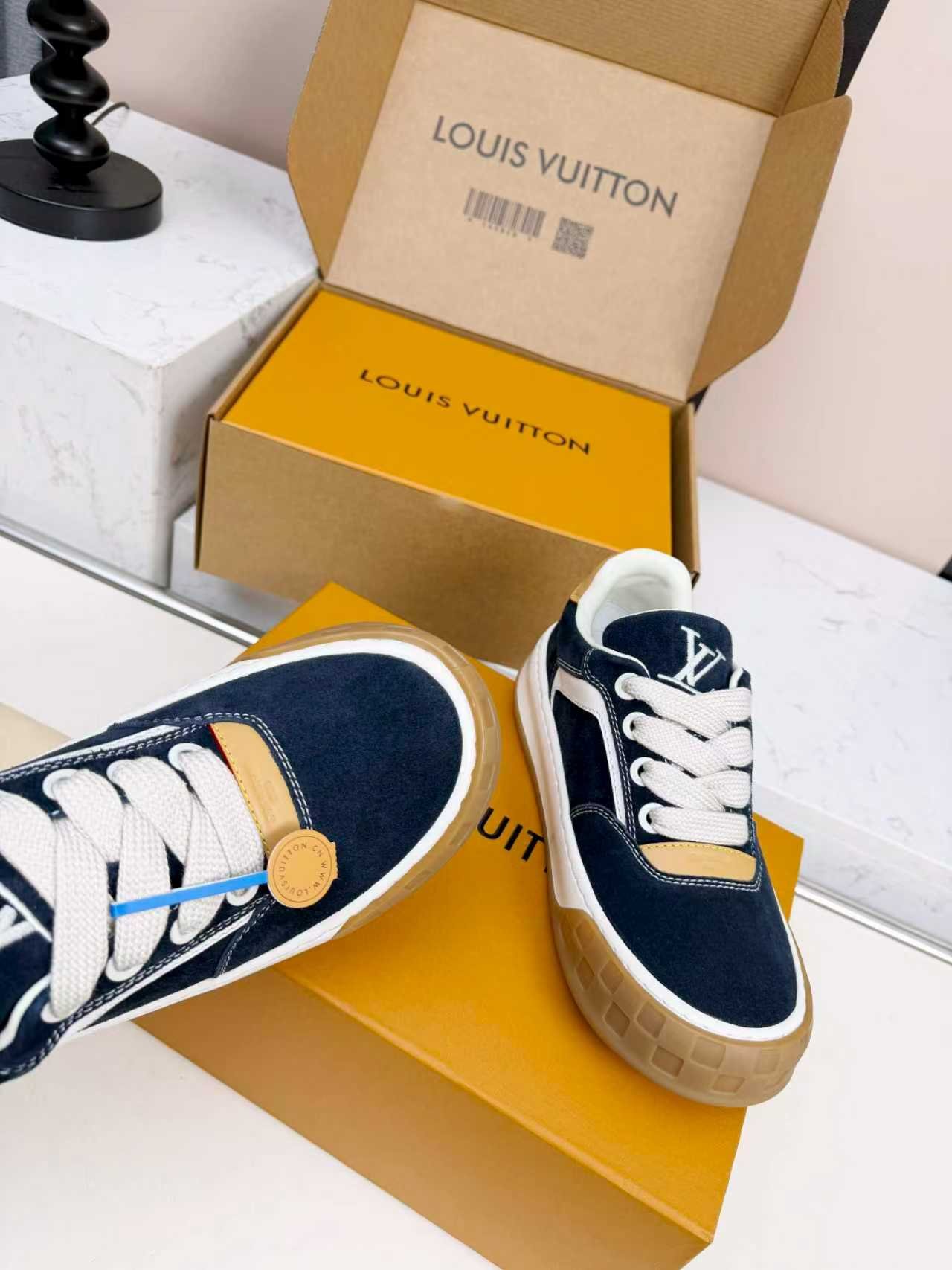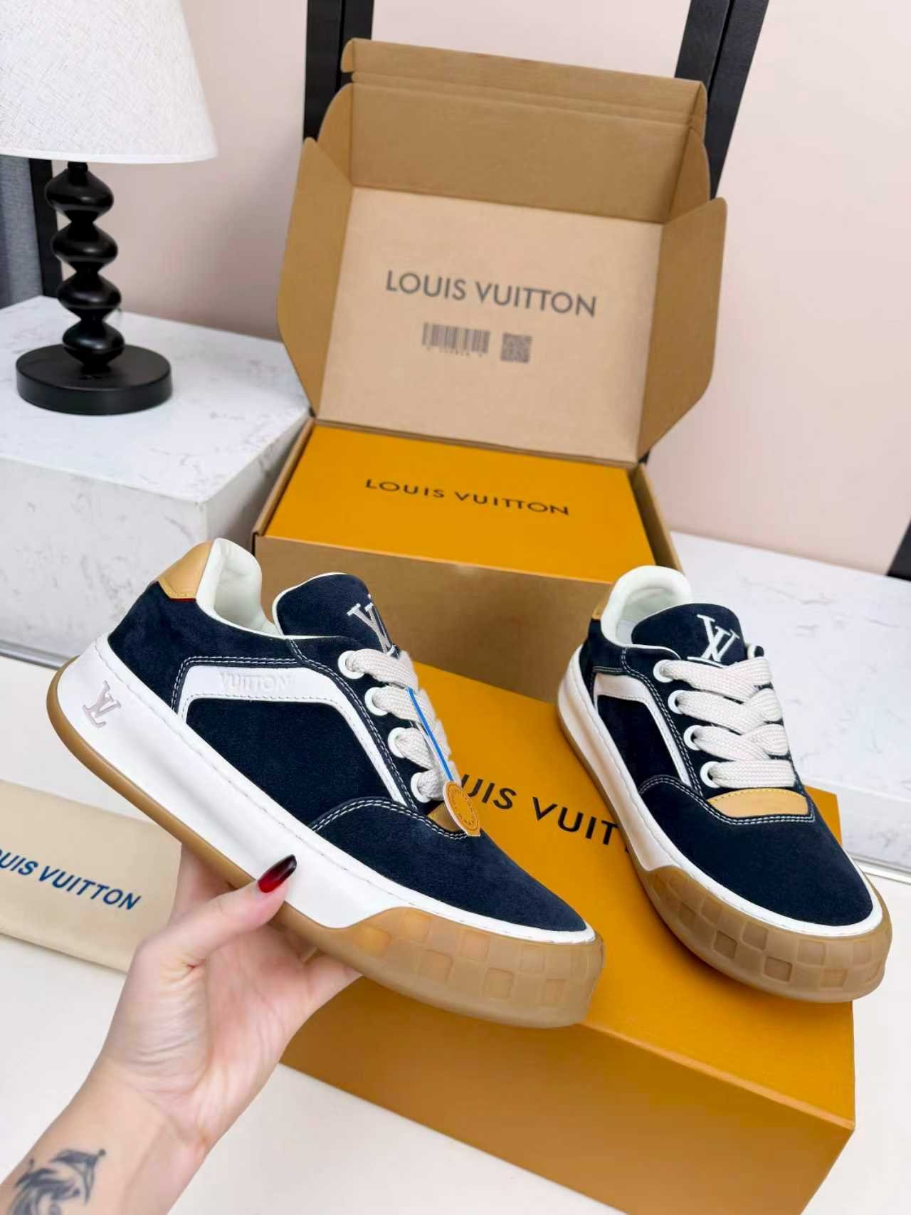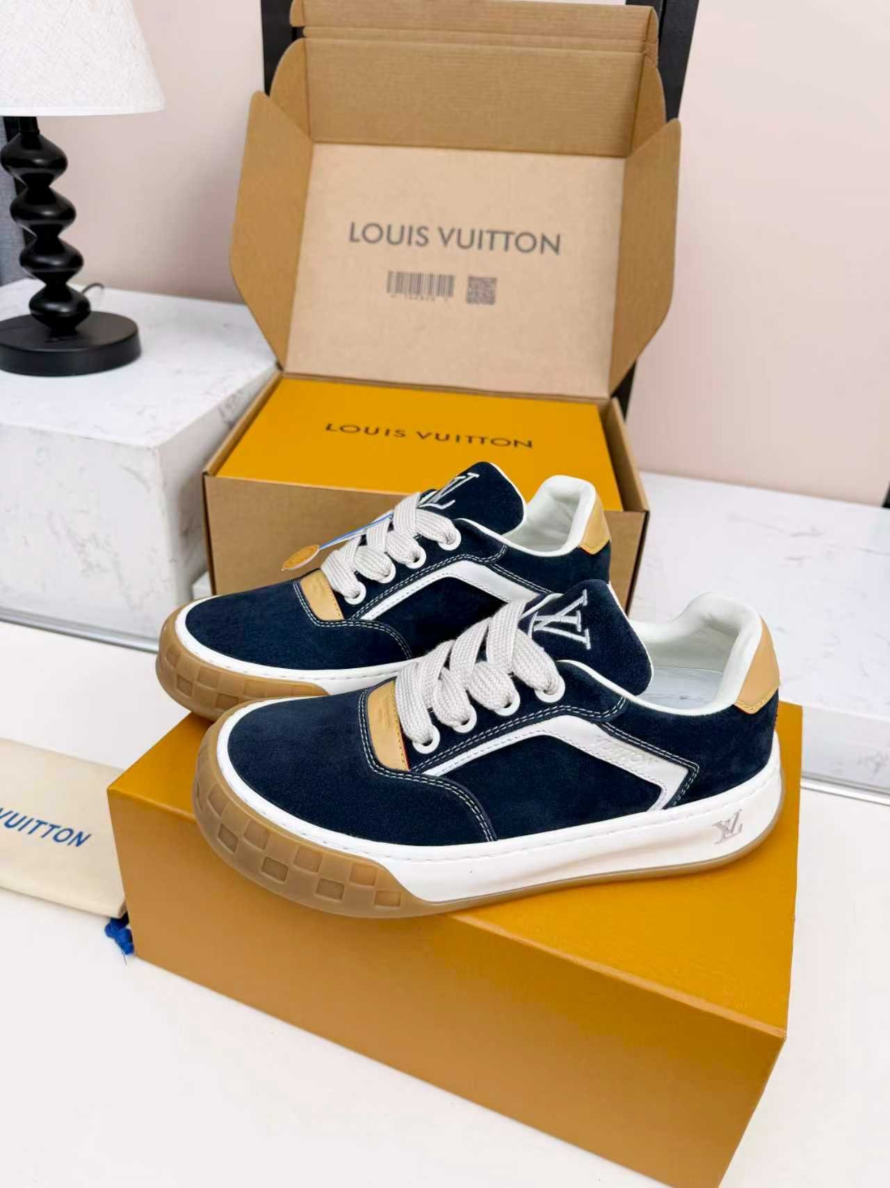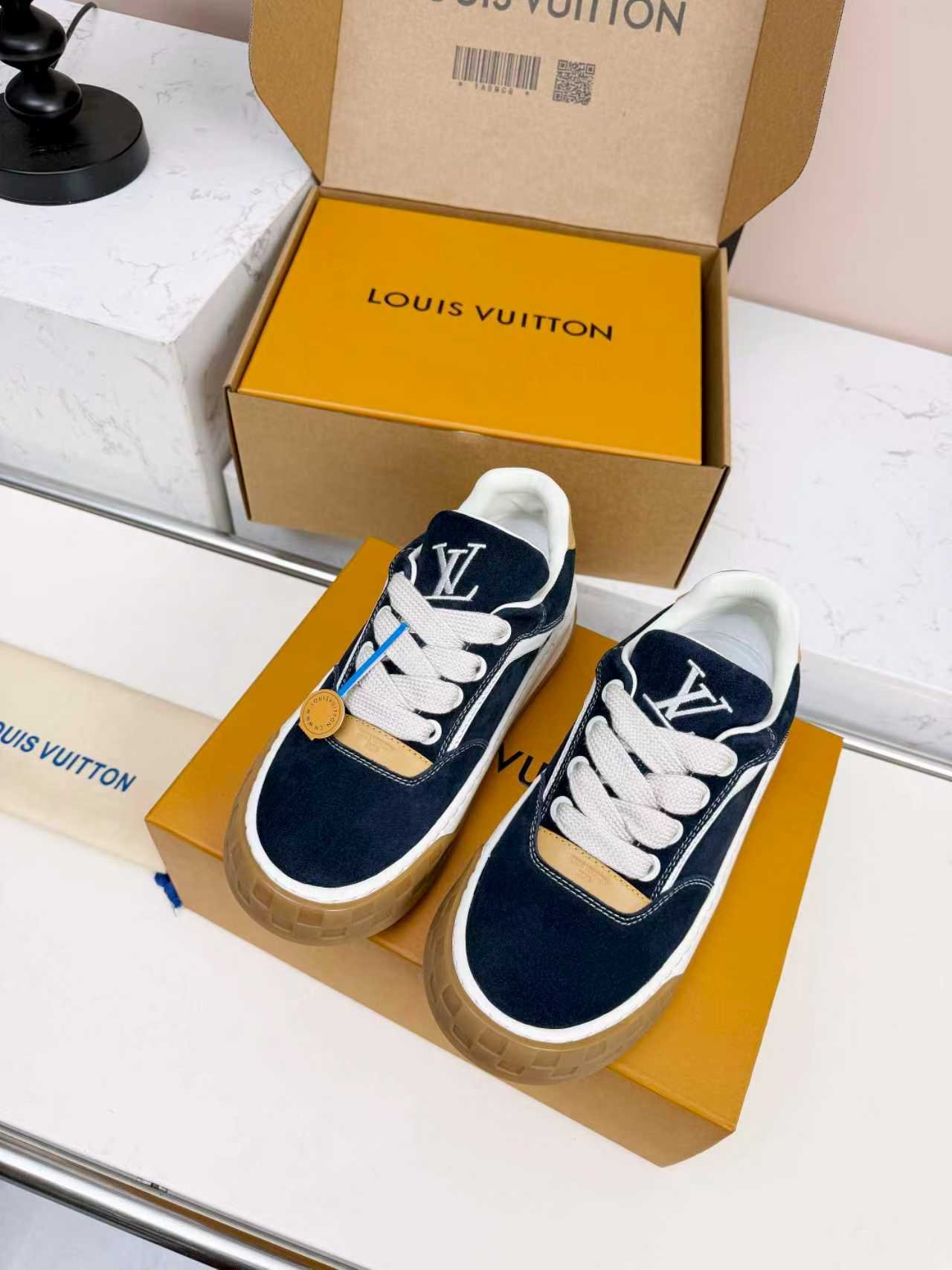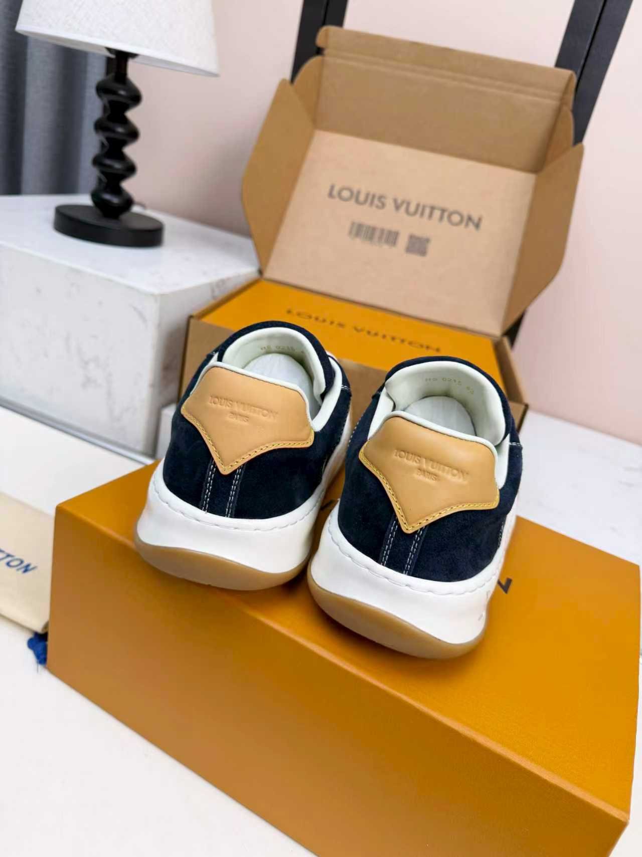 Comes with the original Louis Vuitton cardboard shoe box, premium LV dust bag, and official authentication cards. The iconic LV packaging makes these sneakers an ideal high-end gift for birthdays, anniversaries, or special occasions.