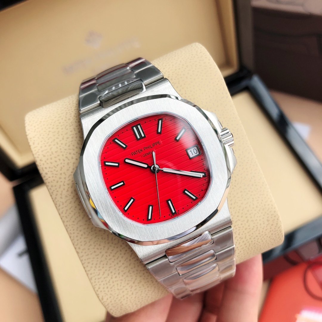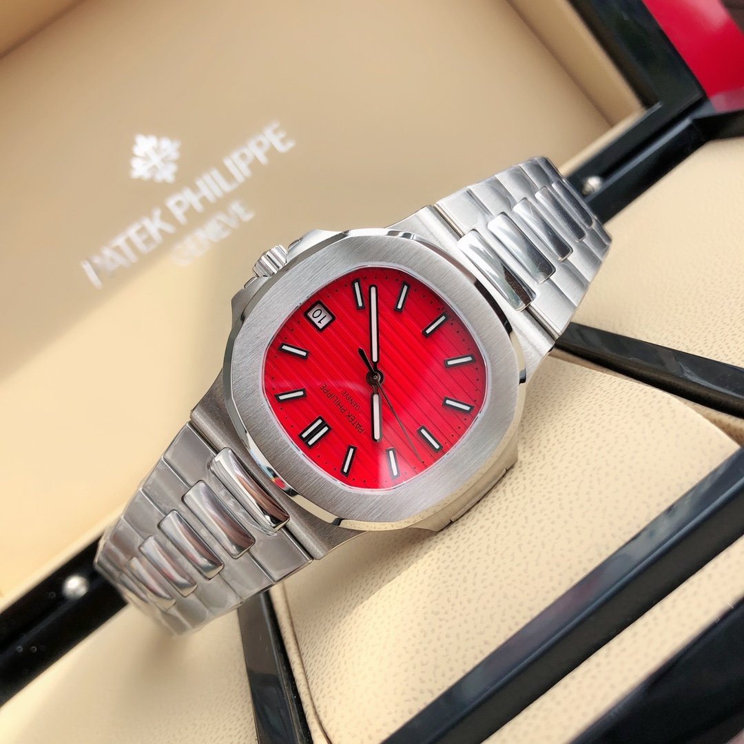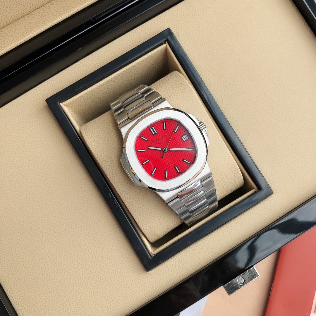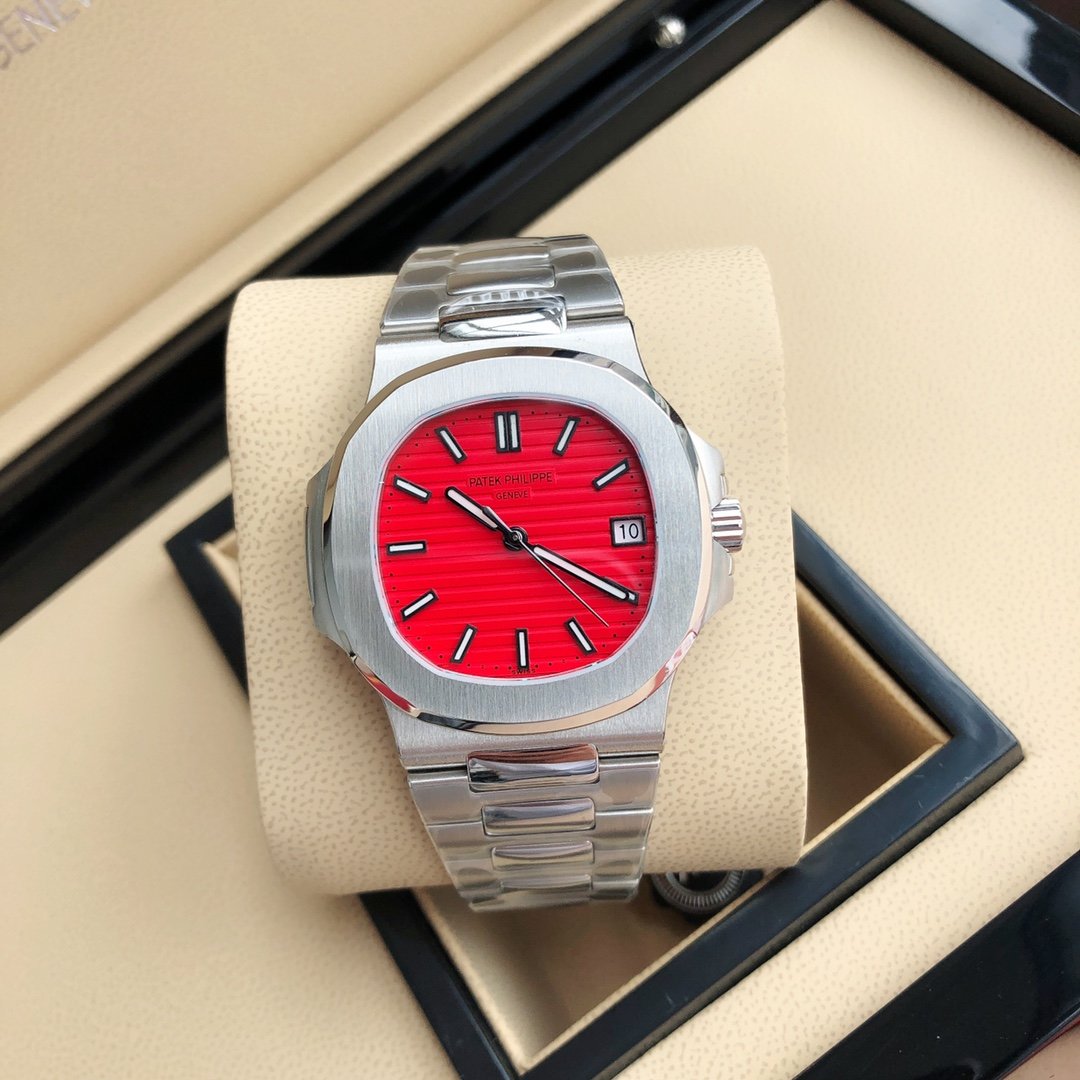 Patek Philippe Nautilus 40mm, Stainless Steel Case, Red Dial, Stainless Steel Bracelet, Automatic Men’s Watch