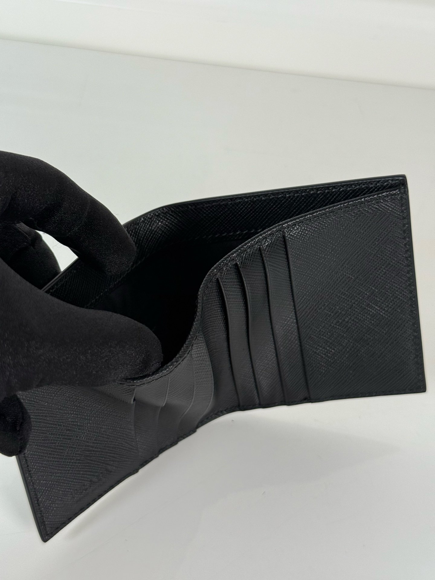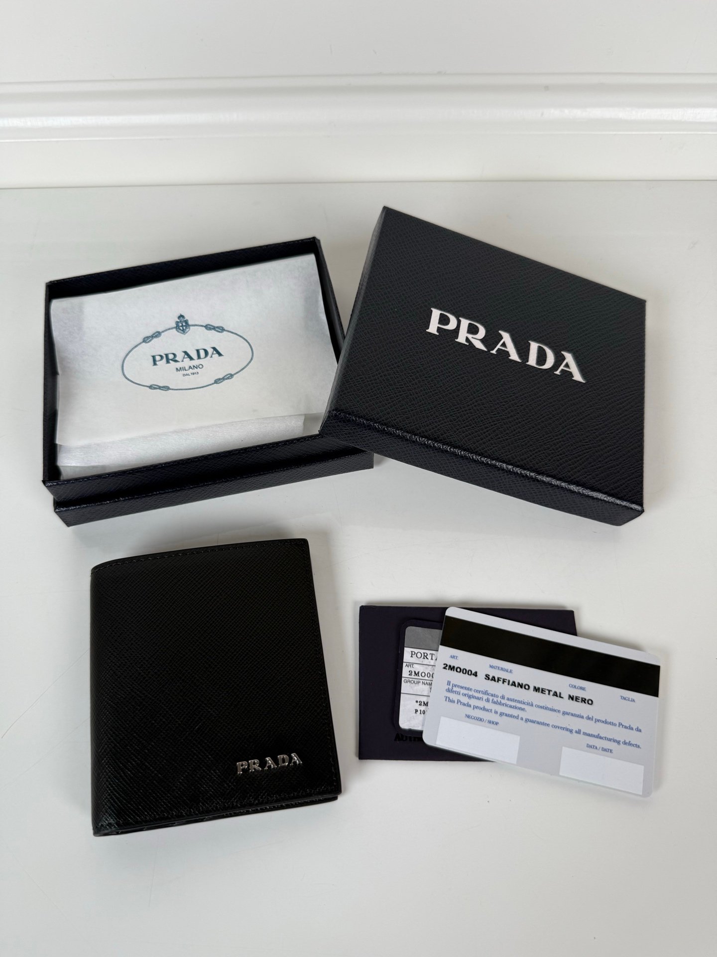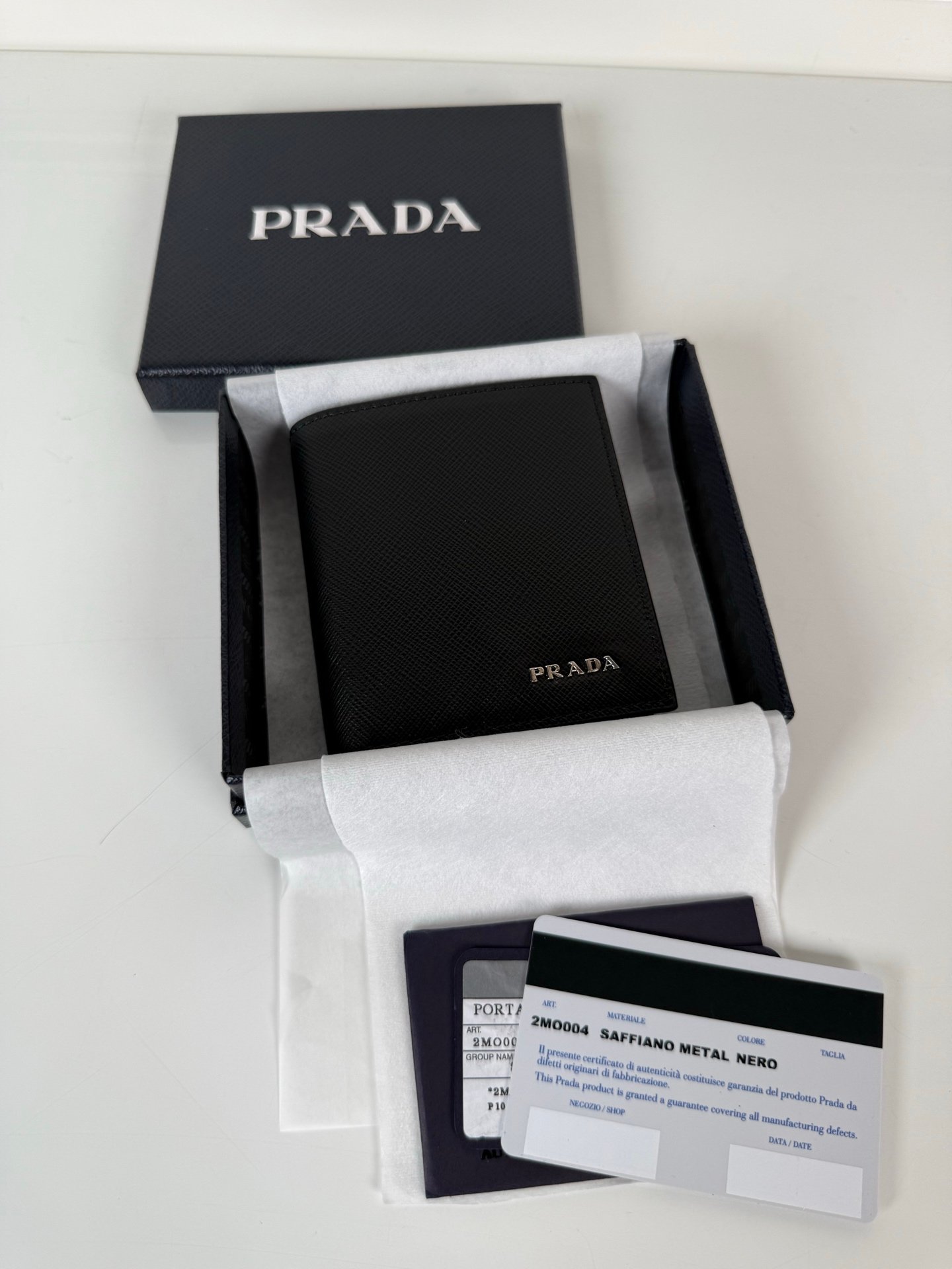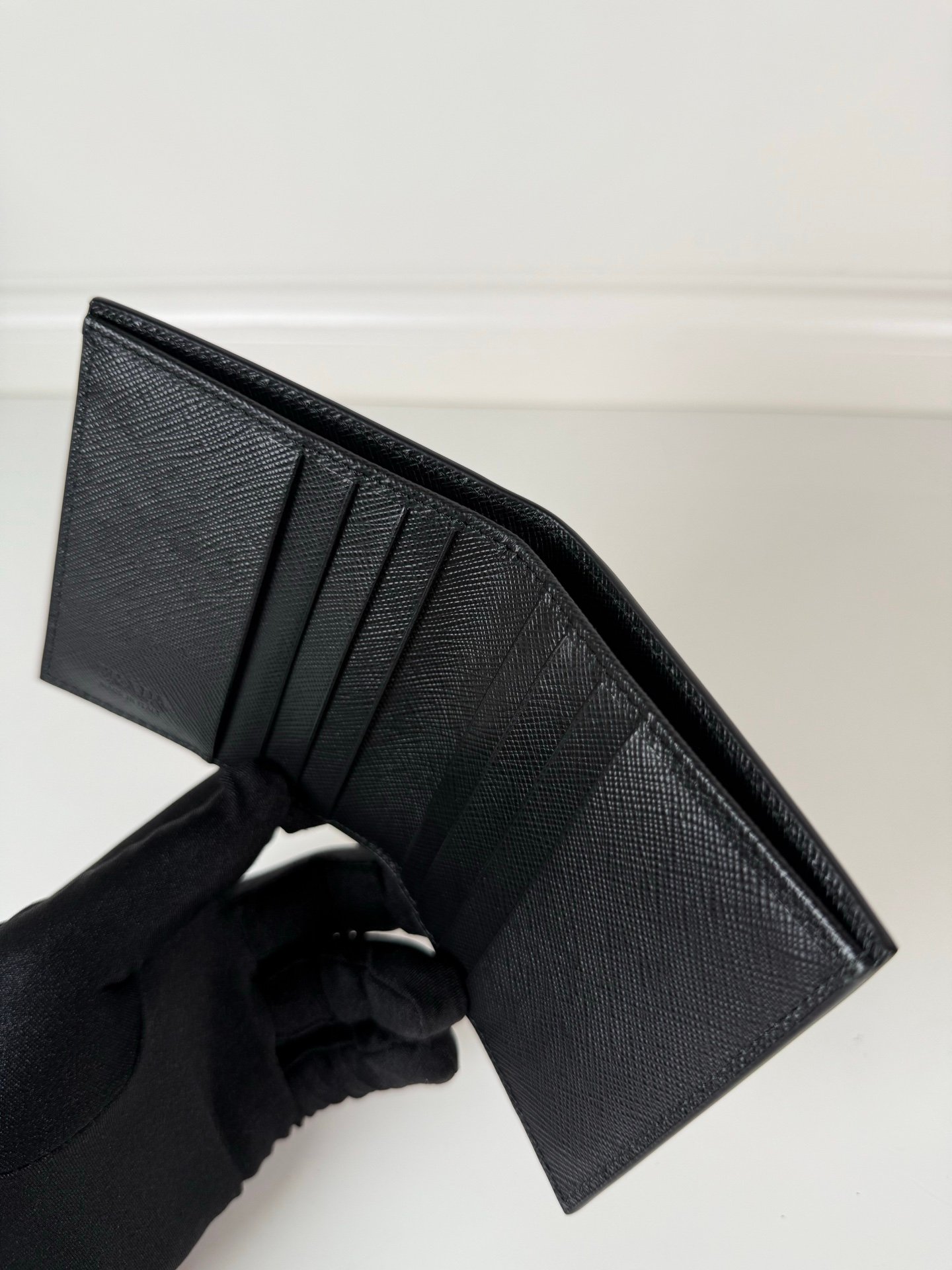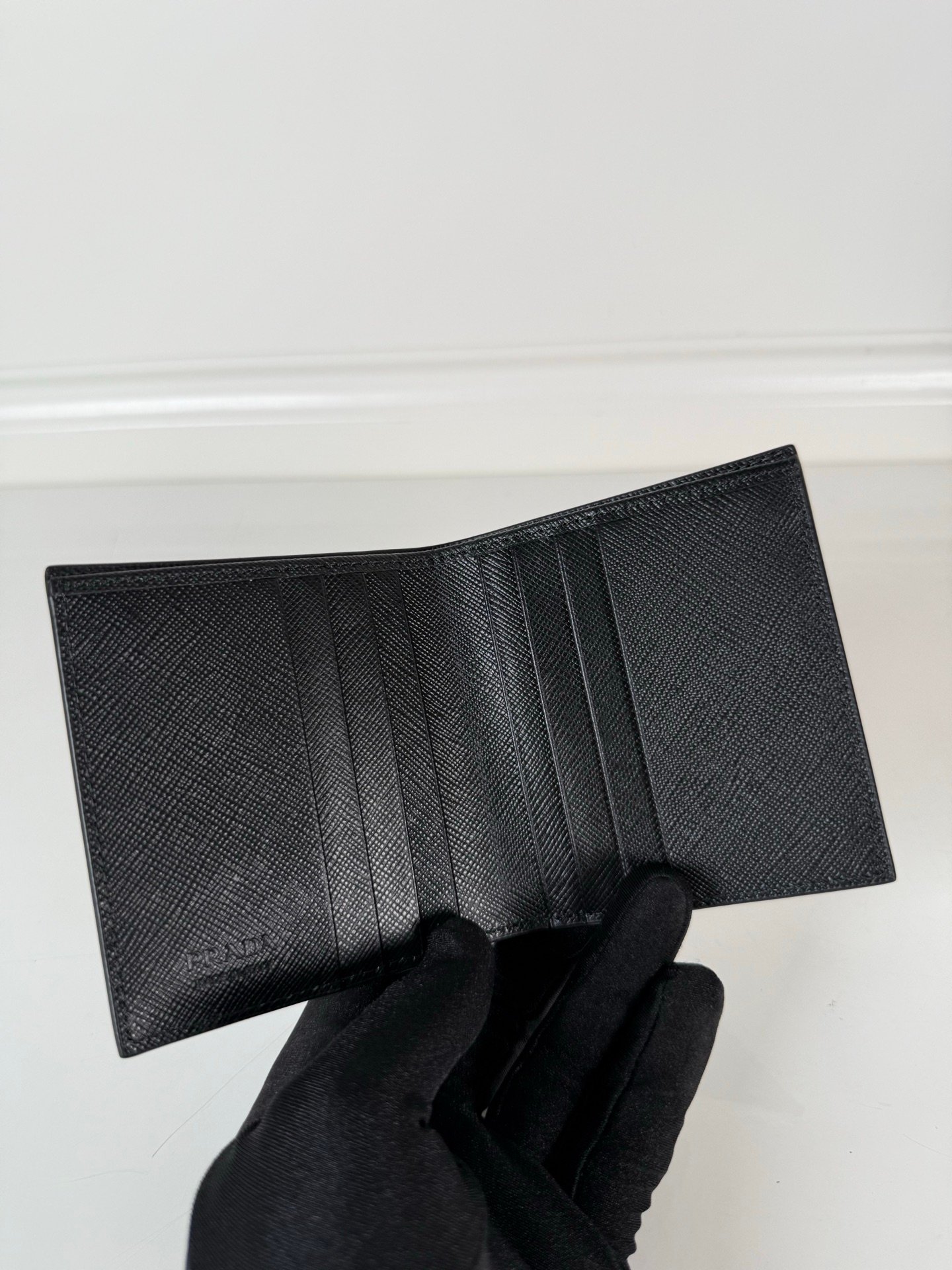- Design: Minimalist black finish with a signature metal Prada logo, perfect for both business and casual occasions
