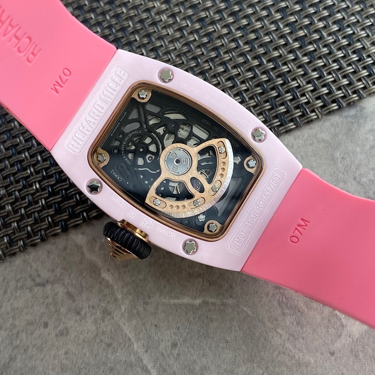Richard Mille RM 07-01, Pink Ceramic Case, Diamond-Set Dial, Pink Rubber Strap, Automatic Ladies’ Watch