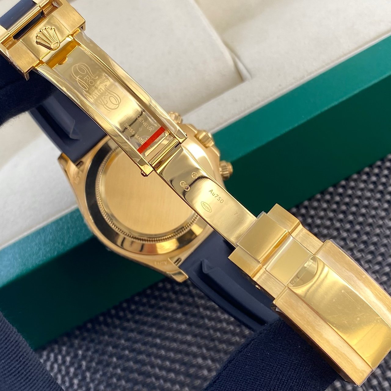 Comes with the original Rolex green gift box, outer sleeve, instruction manual, warranty papers, and chronometer certificate. The iconic green packaging makes it an ideal high-end gift for birthdays, anniversaries, or special milestones.